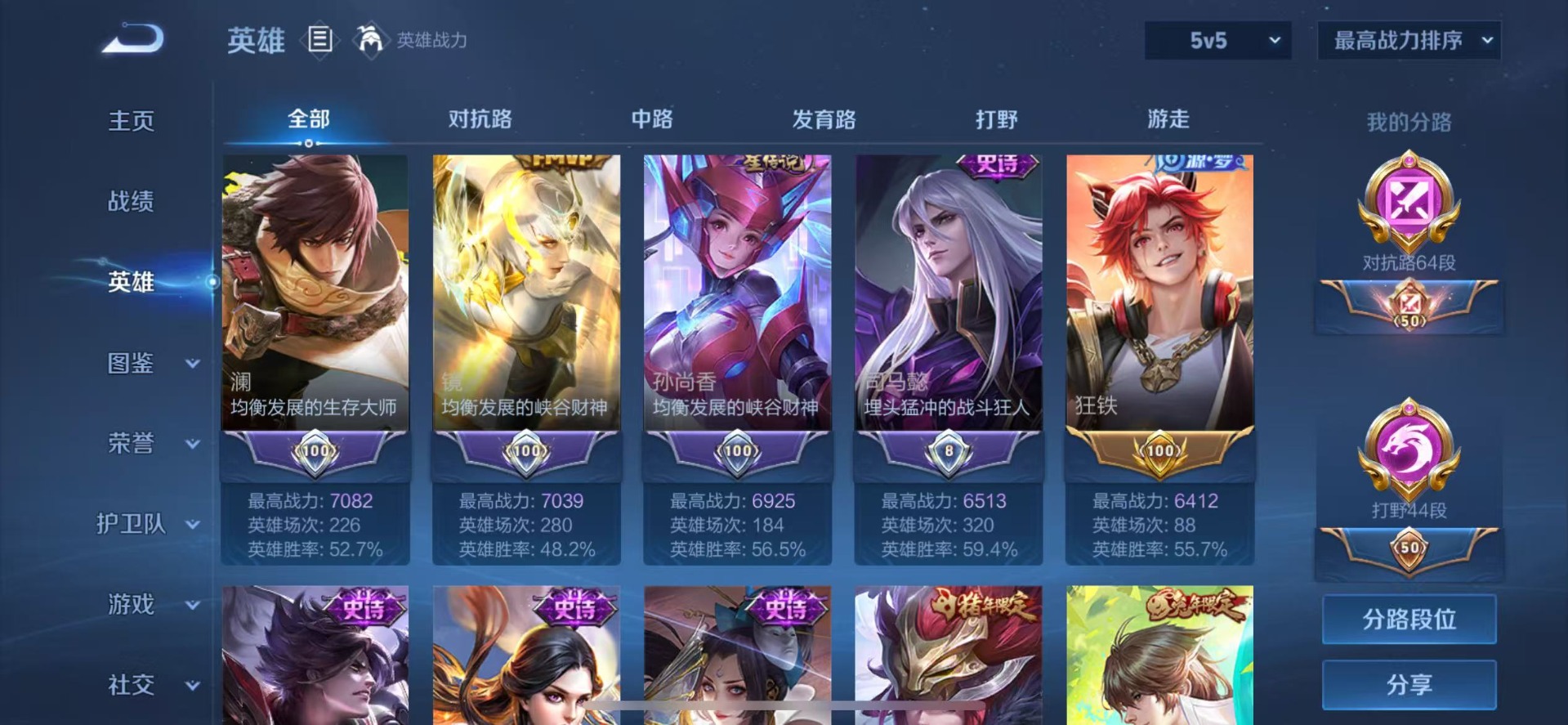 - [11867226]V7 1典藏 9传说 124英雄 233皮肤 可修改实名 优质装备:九霄神辉(木兰典藏),久胜战神,炽阳神光,一念神魔,地狱火,零号·赤焰,李逍遥,涂山容容 珍宝阁皮:女武神,玩趣恶龙 限定皮:愿照·九州拓(澜年限),鸣野蒿,时雨天司(水龙头),神威(电光马子),飞衡(韩信年限),高山流水,冰锋战神,天狼运算者,梁祝,御风骁将(吕布年限),李小龙,朱雀志(守约年限),如梦令-后羿,冰霜恋舞曲,蜜橘之夏 史诗皮:器灵·浮梦炉,龙之律动,百相守梦-周瑜,百相守梦-黄忠,苍穹之光,白龙吟,黄金分割率,特工魅影,千年之狐,百解令(蒙犽),偶像歌手,乱世虎臣,节奏热浪,修罗,女仆咖啡,水果甜心,星夜王子,心灵骇客,功夫厨神,德古拉伯爵,幽灵船长,鬼剑武藏,舞动绿茵,地狱岩魂,纤云弄巧,拒霜思,缤纷独角兽,乘风破浪,逐浪之夏,水晶猎龙者,曙光守护者,箭羽风息,金属风暴,原初追逐者,圣诞狂欢,鹰眼统帅,黎明之约,未来纪元-赵云