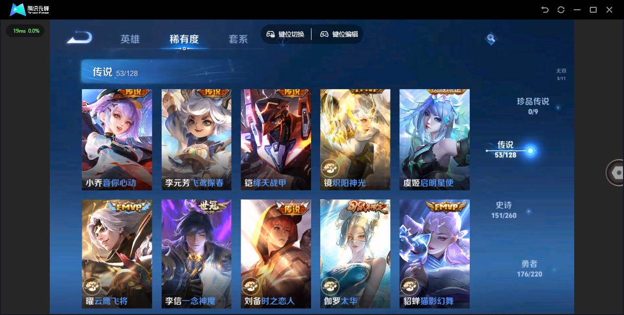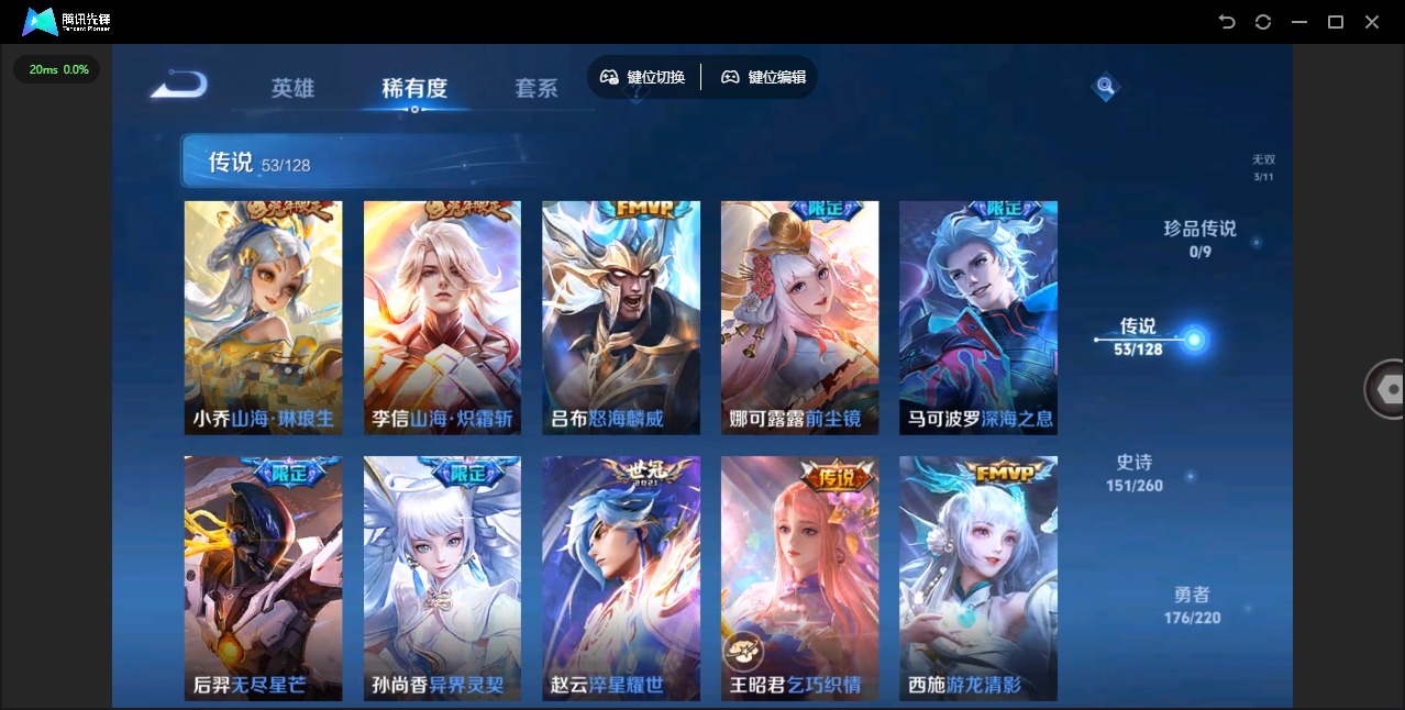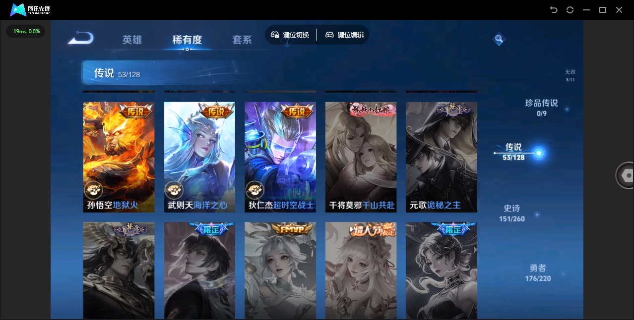 - [12279809]V7 1典藏 8传说 124英雄 190皮肤 可修改实名 优质装备:鸣剑·曳影,云鹰飞将(小将军),绛天战甲(鸡嘴战神),久胜战神,地狱火,飞鸢探春 传说皮:幻光神枪 珍宝阁皮:妄想食味 限定皮:愿照·九州拓(澜年限),鸣野蒿,飞衡(韩信年限),梁祝,岱宗(典韦年限),李小龙,大圣娶亲 史诗皮:化蝶舞,星界战将,石田雨龙,茶境仙,百相守梦-黄忠,紫霞仙子,黄金分割率,特工魅影,千年之狐,江河有灵,魅语,百解令(蒙犽),高渐离燃音魔法,无限星赏官,暗夜猫娘,猫狗日记-孙策,乱世虎臣,摇滚巨星,水果甜心,绅士熊喵,星夜王子,心灵骇客,功夫厨神,德古拉伯爵,暗隐猎兽者,幽灵船长,鬼剑武藏,乐园奇幻夜,地狱岩魂,纤云弄巧,繁星吟游(呼啦呼啦),拒霜思,缤纷独角兽,乘风破浪,逐浪之夏,水晶猎龙者,曙光守护者,金属风暴,圣诞狂欢,圣诞恋歌,鹰眼统帅,未来纪元-赵云