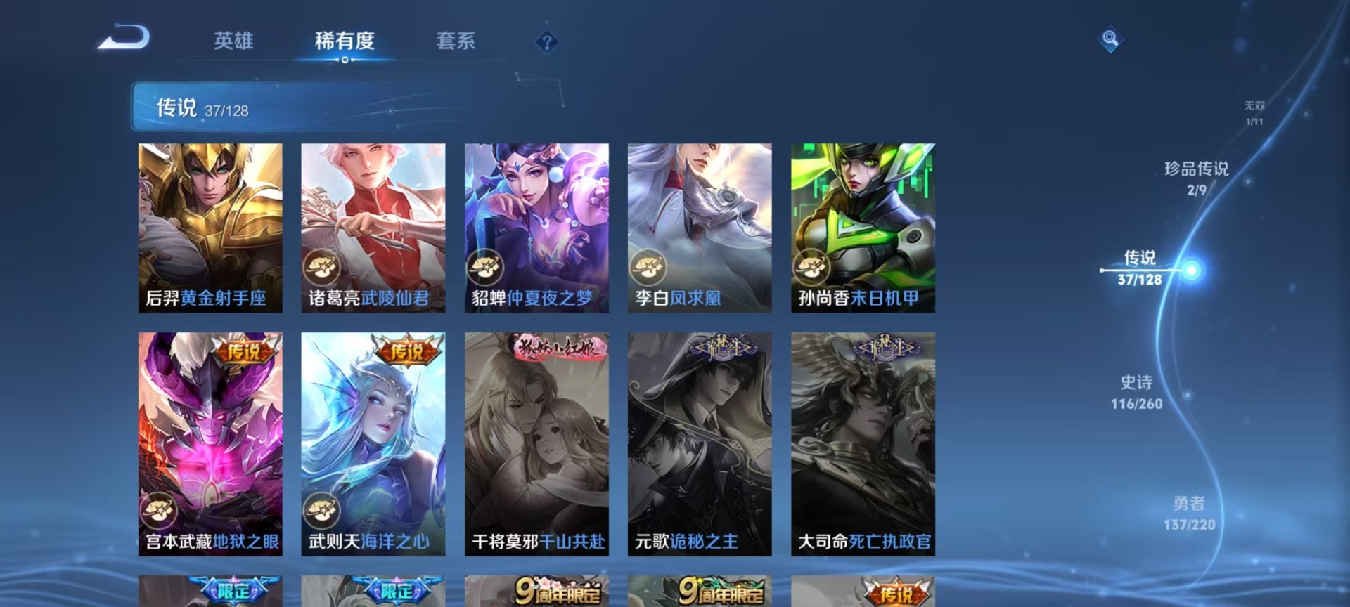 [12147506]V9 1无双 2珍品传说 37传说 126英雄 351皮肤 典藏英雄武则天 可修改实名 优质装备:青丘·九尾(妲己无双),朽木白哉,黑崎一护,黄金射手座,冠军飞将,云鹰飞将(小将军),黄金白羊座,久胜战神,炽阳神光,云霓雀翎,末日机甲-孙尚香(绿蚂蚱),仲夏夜之梦(大飞蛾),海洋之心,地狱之眼,乞巧织情,时之恋人-刘备(电焊工),淬星耀世,末日机甲-孙策,浮生妄,记忆之芯(机甲兔),青丘·九尾,电玩·雷克斯,妄想实况,玄雷天君,涂山容容 传说皮:云诺千山,续相思,星之鸣奏,祥瑞亨通,幻光神枪 珍宝阁皮:优雅恋人,蔷薇恋人,女武神 限定皮:愿照·九州拓(澜年限),愿照·福禄聚(蔡文姬年限),愿照·岁时盈(虞姬年限),愿照·山河定(司空震年限),愿照·众生和(妲己年限),愿照·千秋盛(女娲年限),至尊宝,凤求凰(白切鸡),凤凰于飞,武陵仙君(小桃花),傲雪梅枪,补天,遇见飞天,高山流水,诗剑行,匿光决锋者,五谷丰年,青龙志(铠年限),游园惊梦,梁祝,御风骁将(吕布年限),天狼溯光者,李小龙,玄武志(苏烈年限),朱雀志(守约年限),如梦令-后羿,霸王别姬-虞姬,孙行者,猪悟能,一生所爱,大圣娶亲,引擎之心,青春决赛季,美猴王,匿光追影者,时之祈愿-云中君,时之祈愿-瑶(瑶传限),玉兔公主,唐三藏 史诗皮:鸭鸭历险记-刘禅,器灵·浮梦炉,糖绘人间,狼魂孤将,绮世丹青,瑰影绮梦,化蝶舞,龙之律动,雪豹·霜爪,藏狐·褐绒,布丁狗之誓,石田雨龙,戍鼓铭心,茶境仙,织梦人,苍穹之光,电玩小子(小书包),黄金分割率,永昼,江河有灵,完美假期,魅语,无限星赏官,匿光破解者,冰冠公主,青蛇,偶像歌手,白蛇,晚萤,电玩·兔顽号,电玩·爆裂旋风,龙骑士(小龙虾),末日机甲-吕布,时之恋人-孙尚香,乱世虎臣,节奏热浪,修罗,女仆咖啡,摇滚巨星,水果甜心,绅士熊喵,天才门将,星夜王子,心灵骇客,时之奇旅-安琪拉,功夫厨神,德古拉伯爵,暗隐猎兽者,幽灵船长,鬼剑武藏,暗渊魔法,心灵战警,舞动绿茵,地狱岩魂,诗语江南,纤云弄巧,繁星吟游(呼啦呼啦),拒霜思,缤纷独角兽,乘风破浪,逐浪之夏,水晶猎龙者,金属风暴,圣诞狂欢,圣诞恋歌,鹰眼统帅,魅力维加斯,赏金猎手,奇遇舞章,天秀·音浪,滕王阁序,千筹问战,无心,未来纪元-赵云