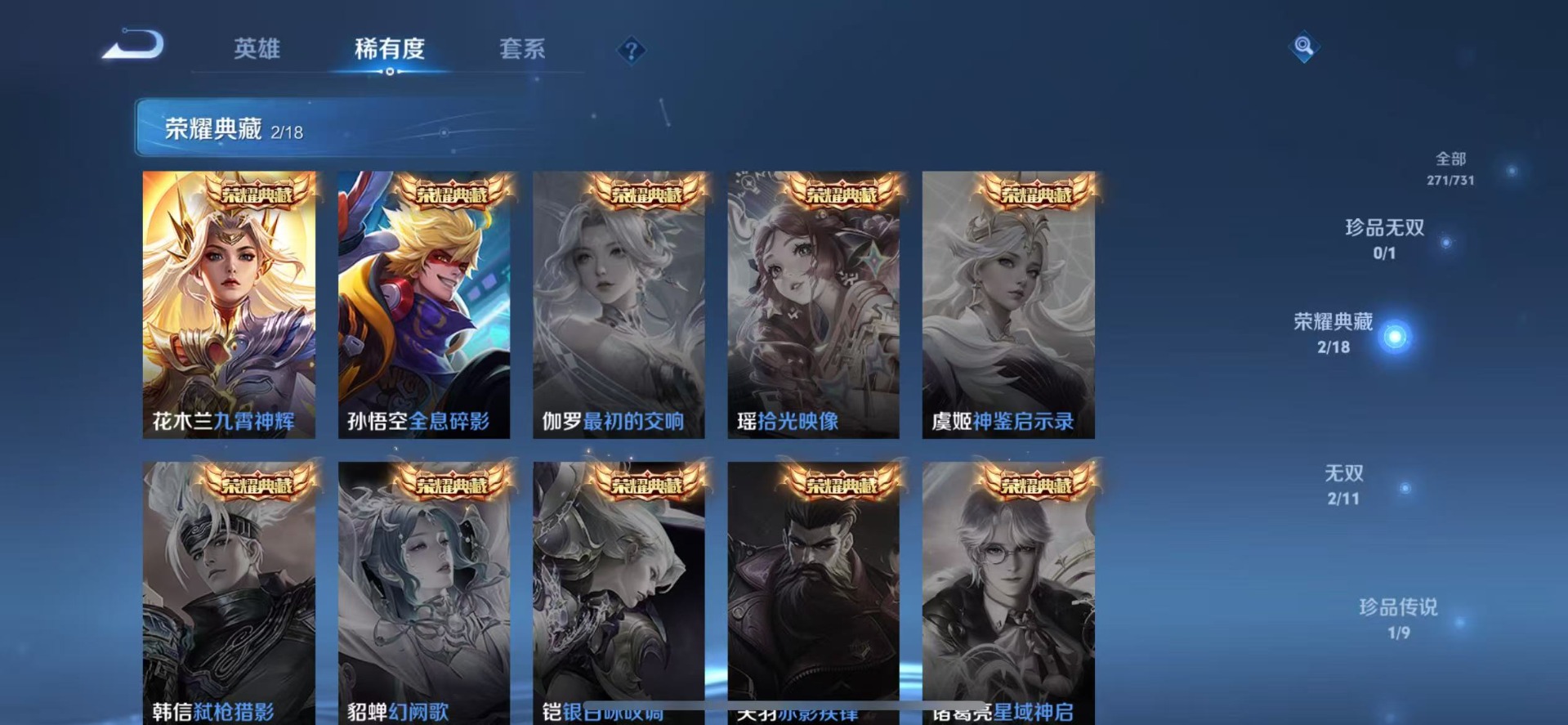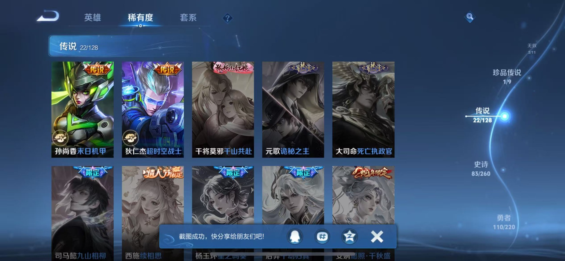 - [11515147]V9 3典藏 20传说 124英雄 273皮肤 典藏英雄武则天 可修改实名 女号 荣耀水晶:银白咏叹调(倪克斯侍卫),杀手不太冷,无限飓风号(高达) 传说皮:游龙清影(小青龙),山海·炽霜斩(李信年限),仲夏夜之梦(大飞蛾),地狱之眼,末日机甲-孙尚香(绿蚂蚱),云霓雀翎,猫影幻舞,胖达荣荣,挚爱之约,挚爱花嫁,炽翼辉光(娃娃菜牛角包) 珍宝阁皮:蔷薇恋人 限定皮:凤凰于飞,太华(伽罗年限),异界灵契(白毛香),前尘镜,时之彼端,白鹤梁神女,山海·碧波行(瑶年限),无限倾心-项羽,遇见飞天,高山流水,无限倾心-虞姬,匿光决锋者,怒海麟威,冰锋战神,梁祝,逐梦之星,天狼溯光者,李小龙,逐梦之影,朱雀志(守约年限),霸王别姬-项羽,霸王别姬-虞姬,真爱至上,孙行者,猪悟能,乒乒小将,蜜橘之夏,时之祈愿-瑶(瑶传限),枫霜尽,时之奇旅-妲己,山海·玄木吟(马可年限) 史诗皮:遇见神鹿,苍穹之光,电玩小子(小书包),特工魅影,冰冠公主,偶像歌手,无限星赏官,白蛇,暗夜猫娘,龙骑士(小龙虾),末日机甲-吕布,猫狗日记-孙策,时之恋人-孙尚香,乱世虎臣,节奏热浪,女仆咖啡,摇滚巨星,水果甜心,绅士熊喵,天才门将,星夜王子,功夫厨神,德古拉伯爵,暗隐猎兽者,幽灵船长,鬼剑武藏,心灵战警,舞动绿茵,繁星吟游(呼啦呼啦),拒霜思,缤纷独角兽,乘风破浪,逐浪之夏,龙鼓争鸣,水晶猎龙者,曙光守护者,箭羽风息,唤灵魅影,金属风暴,圣诞狂欢,圣诞恋歌,鹰眼统帅,王者之锤,暗夜贵公子,魅力维加斯,无心,未来纪元-赵云