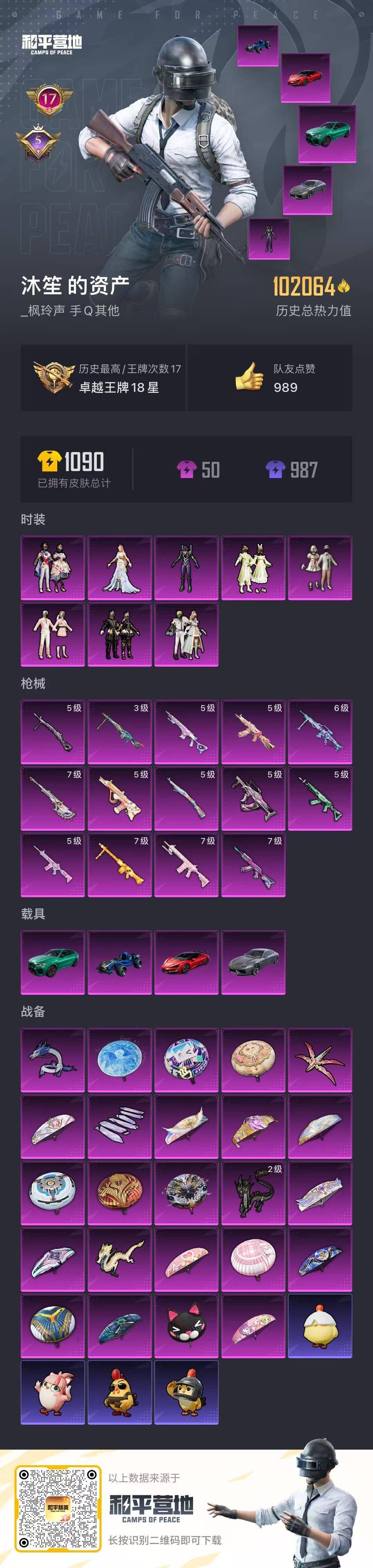 - PX_2056720- 苹果手Q-10王牌印记-4粉装-7特效枪-1载具-50036热力值-102套装-158枪皮-5卓越印记-2传奇印记 【4粉装】,梦幻火箭,第五大道,冷漠罗丽,圣堂之誓 【7特效枪】AKM-绿萝繁花-5级 SCAR-L-锦绣绵绵-5级 M416-电玩时刻-5级 GROZA-镜光银凌-5级 AUG-暖羊咩咩-5级 Kar98K-巳巳如意-5级 Mk14-精灵梦叶罗丽-7级 【