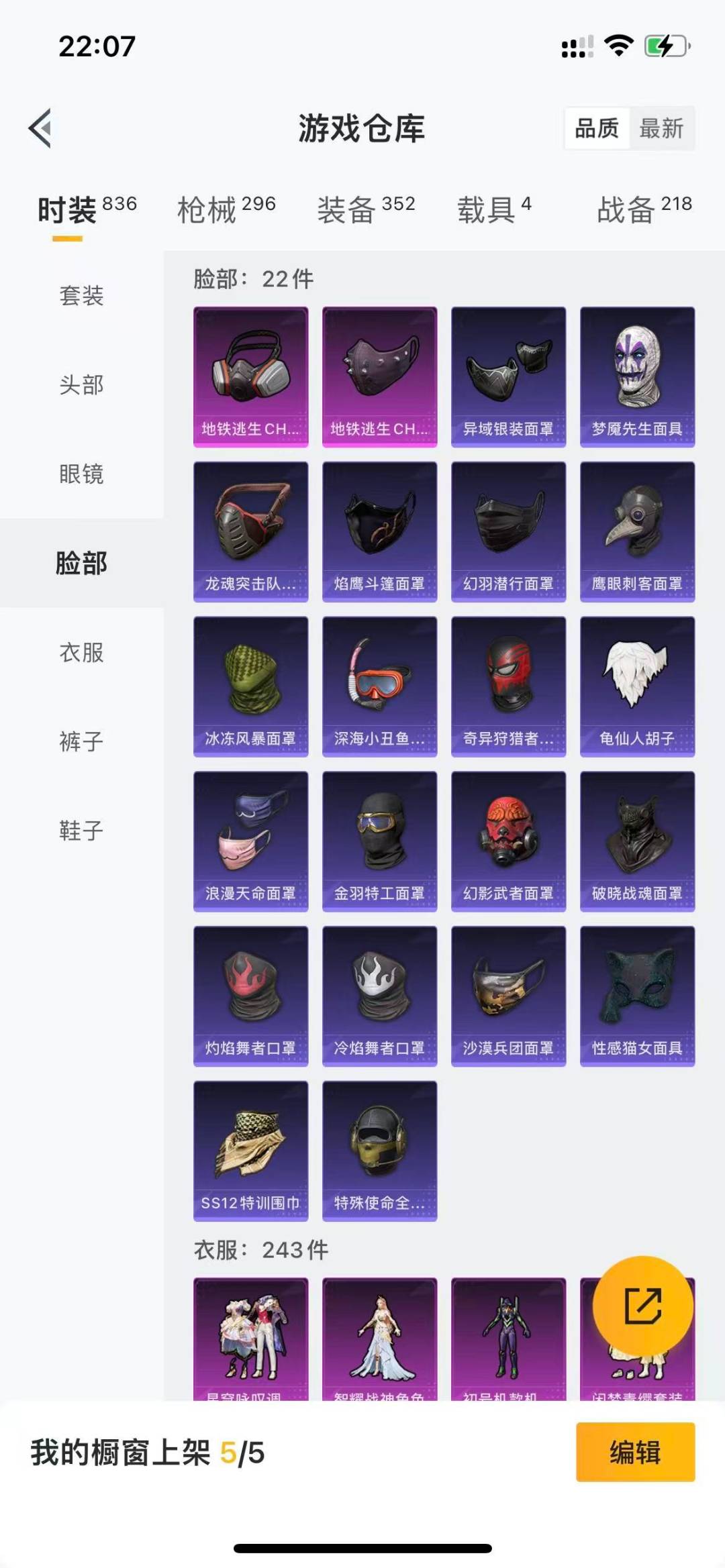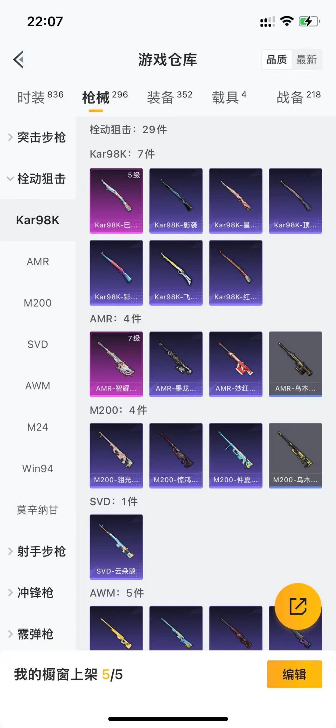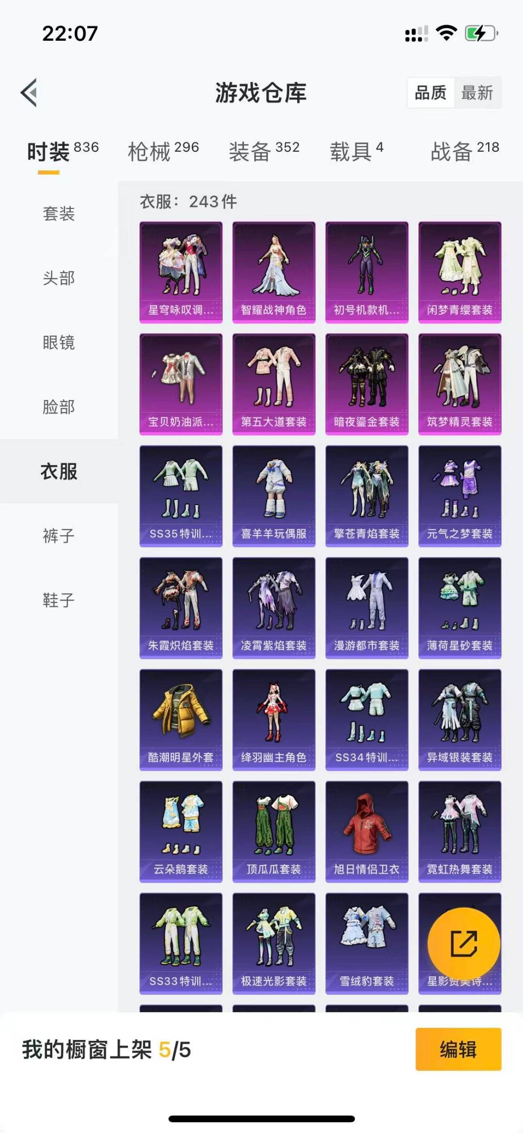 [12147571]8粉装 14特效枪 4载具 17印记 可二次 可修改实名 身法装备:舞王派对(派对舞王、小金鞋),暗影哥特(红眼罩),初号机款机体服(紫螳螂),巡查衣(绝对防御上衣) 优质装备:仰望U9(赤霞丹朱),宝马X6 M(曼岛绿),初号机款机体服(紫螳螂),合金龙骨(蓝),巡查员衣服(绝对防御上衣),兰博基尼Estoque(银翼灰),巡查衣(绝对防御上衣),舞王派对(派对舞王、小金鞋),AKM炫紫旋律,奇异狩猎者,宝贝奶油派,M417第五大道,MG3酷泡奶龙,七级MG3-酷泡奶龙,七级M417-第五大道,七级AKM-炫紫旋律,M416电玩时刻,M762-青锋波束,GROZA-镜光银凌,AUG-暖羊咩咩,智耀战神,AMR-智耀战神,七级AMR-智耀战神,星穹咏叹调,AKS-74U-星穹咏叹调,MK14-甜梦熊击,MG3-辉羽雀灵,MG-36-幻彩电音,Kar98K-巳巳如意 热门装扮:筑梦精灵,暗夜鎏金,第五大道,闲梦青缨,神秘黑猫,激萌罗小黑,鹰眼刺客,万圣娃娃,梦魇先生,深海小丑鱼,浪漫波比,派对舞王(小金鞋) 稀有枪皮:DP-28-豹影疾电 六级特效枪:六级MG-36-幻彩电音 五级特效枪:五级M762-青锋波束,五级GROZA-镜光银凌,五级Kar98K-巳巳如意,五级DP-28-豹影疾电,五级AUG-暖羊咩咩,五级MK14-甜梦熊击,五级AKS-74U-星穹咏叹调,五级M416-电玩时刻 三级特效枪:三级MG3-辉羽雀灵 紫色装扮:霓虹热舞,极速光影,SS31特训套装,SS30特训套装,SS23特训,云朵鹅,雪绒豹,SS33特训套装,青涩时光,旭日情侣,顶瓜瓜,幻彩翩翩,熠彩粉晶,碧波幻想,田园牧歌,轻风白浪,和煦暖阳,SS22特训,莱茵河畔,香榭午后,妙红点点,吉莉礼服,坚韧舞者,夏日音浪,完美偶像,帅气教官,幻世战舞者,幻影武者,怒火燎原,冷焰舞者,人气偶像,冰川特警,SS21特训,零款战斗服,明日香款战斗服,电音精灵,天籁歌者,瑞龙福将,团圆交子,SS17特训,治愈之星,科技之星,SS14特训,萌趣颜团子,SS15特训,暗夜傀儡,甜心亚梦,虚音幻奏,SS20特训,竞技角斗士,梦幻奶油,暖心橘喵,战地督导,娇憨猪猪,萌趣咩咩,焰山流火,异彩先驱,SS18特训,飞驰魅影,音速流光,SS19特训,黎明保卫者,风行保卫者,飞行日记,魅力单车,鹤鸣,麻辣教官,黄色伏
