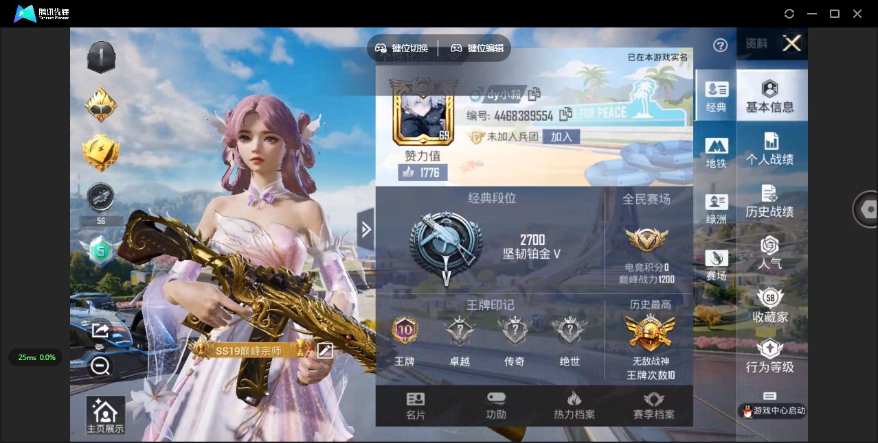 - [11818321]1红装 12粉装 12特效枪 3载具 28印记 可二次 可修改实名 身法装备:舞王派对(派对舞王、小金鞋),零号机款机体服(黄螳螂),巡查衣(绝对防御上衣),萌熊伴侣背包(粉熊背包) 优质装备:沙丘之主-图卡盟(黄金木乃伊),三级沙丘之主-图卡盟(3级黄金木乃伊),雪国幻梦(冰雪女王),虚妄之影(炫耀紫),零号机款机体服(黄螳螂),玛莎拉蒂Ghibli(粉),合金龙骨(蓝),巡查员衣服(绝对防御上衣),九级SCAR-L-天蓬元帅(满级天蓬元帅SCAR-L),巡查衣(绝对防御上衣),舞王派对(派对舞王、小金鞋),萌熊伴侣背包(粉熊背包),MG3洛神天依,AKM炫紫旋律,M416心之恋语,梦幻火箭(新101)(新火箭少女101粉色套装),极限特训,宝贝奶油派,放客神游,俏皮狐尾,洛天依,GROZA焦糖拿铁,UMP45启明星,SCAR-L天蓬元帅,P90沙丘之主,七级GROZA-焦糖拿铁,七级M416-心之恋语,七级AKM-炫紫旋律,M416墨龙九天,破片手榴弹秋玉花灯,七级破片手榴弹秋玉花灯,桃粉嫣然,AUG-圣斗士星矢,七级AUG-圣斗士星矢,羊梦糖心,Kar98K-巳巳如意 热门装扮:彩虹鹿灵,碧影闪光,兔兔白日梦,神秘黑猫,软萌银虎,胖达圆圆,激萌罗小黑,潮萌小黄鸭,仓鼠灰灰,鹰眼刺客,浪漫波比,派对舞王(小金鞋) 载具:空客H135-蔚蓝之翼 稀有枪皮:DP-28-豹影疾电 六级特效枪:六级UMP45-启明星 五级特效枪:五级Kar98K-巳巳如意,五级DP-28-豹影疾电,五级MG3-洛神天依 三级特效枪:三级M416-墨龙九天,三级P90-沙丘之主 紫色装扮:田园牧歌,轻风白浪,SS22特训,SS23特训,幻彩翩翩,灵蜜圈圈,妙红点点,SS21特训,紫芒星,SS31特训套装,SS2特训,SS3特训,SS5特训,人气偶像,冰原使者,,冰川特警,凛冬战士,北国孤狼,霓虹热舞,旭日情侣,SS30特训套装,云朵鹅,彩虹兔,雪绒豹,SS33特训套装,顶瓜瓜,诡诞巡游,混沌火种,SS20特训,青春冒险家,潮流游乐家,SS15特训,时空追击者,暴风机械师,SS16特训,爆裂葡萄,银白舞王,SS13特训,治愈之星,迅捷之星,科技之星,SS14特训,怪笑疯兔,萌趣颜团子,特种颜团子,灵绣,飞驰魅影,音速流光,SS19特训,军刀雅典娜,豚鼠丹丹,吉莉礼服,电音精灵,天籁歌