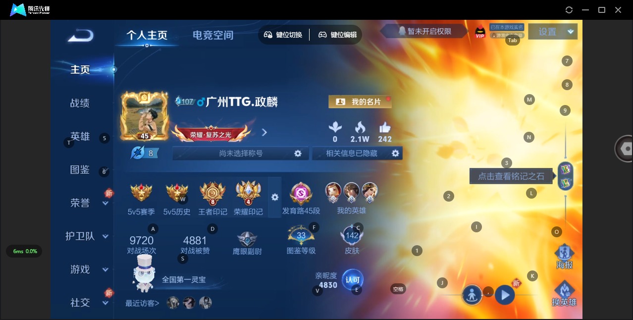 - [11524946]V6 4传说 121英雄 133皮肤 可修改实名 优质装备:云鹰飞将(小将军),淬星耀世 珍宝阁皮:妄想食味 限定皮:愿照·九州拓(澜年限),逐霄战戟,鸣野蒿,李小龙,山海·玄木吟(马可年限) 史诗皮:鸭鸭历险记-刘禅,器灵·浮梦炉,化蝶舞,星界特工,龙之律动,百相守梦-周瑜,破空之剑,谪仙醉月,百相守梦-百里守约,炽弈燎原,百相守梦-黄忠,特工魅影,江河有灵,无限星赏官,猫狗日记-孙策,乱世虎臣,节奏热浪,女仆咖啡,水果甜心,天才门将,星夜王子,功夫厨神,暗隐猎兽者,幽灵船长,鬼剑武藏,乐园奇幻夜,水晶猎龙者,曙光守护者,金属风暴,原初追逐者,鹰眼统帅,魅力维加斯,赏金猎手,天秀·音浪,未来纪元-赵云