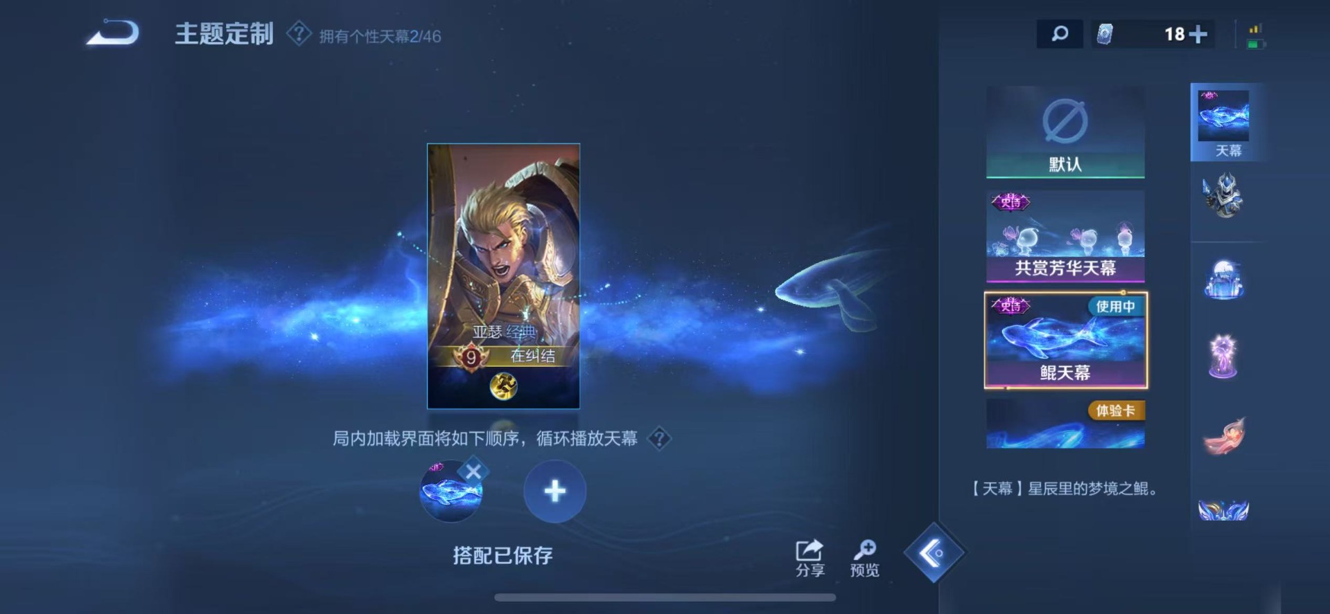 刘邦夺宝奇兵,夏侯惇朔风刀,老夫子醍醐杖,沈梦溪星空之诺,沈梦溪大漠名商,盾山御銮,曹操烛龙,苏烈千军破阵,典韦穷奇,典韦蓝屏警告,达摩沙漠行僧,牛魔御旌,鲁班七号狮舞东方,吕布猎兽之王,元歌云间偶戏,兰陵王金庭之子,裴擒虎擒涛扼浪,鲁班大师探海日志,明世隐疑决卦,蒙犽狂想玩偶喵,马可波罗暗影游猎,白起狰,鬼谷子原初探秘者,女娲朔望之晖,桑启海盐诗旅,狄仁杰万华元夜,嬴政白昼王子,芈月重明,程咬金演武夺筹,扁鹊炼金王,李元芳银河之约,李元芳云中旅人,弈星混沌棋,虞姬凯尔特女王,米莱狄御霄,钟馗神迹守卫,钟馗驱傩正仪,狂铁御狮,太乙真人饕餮
