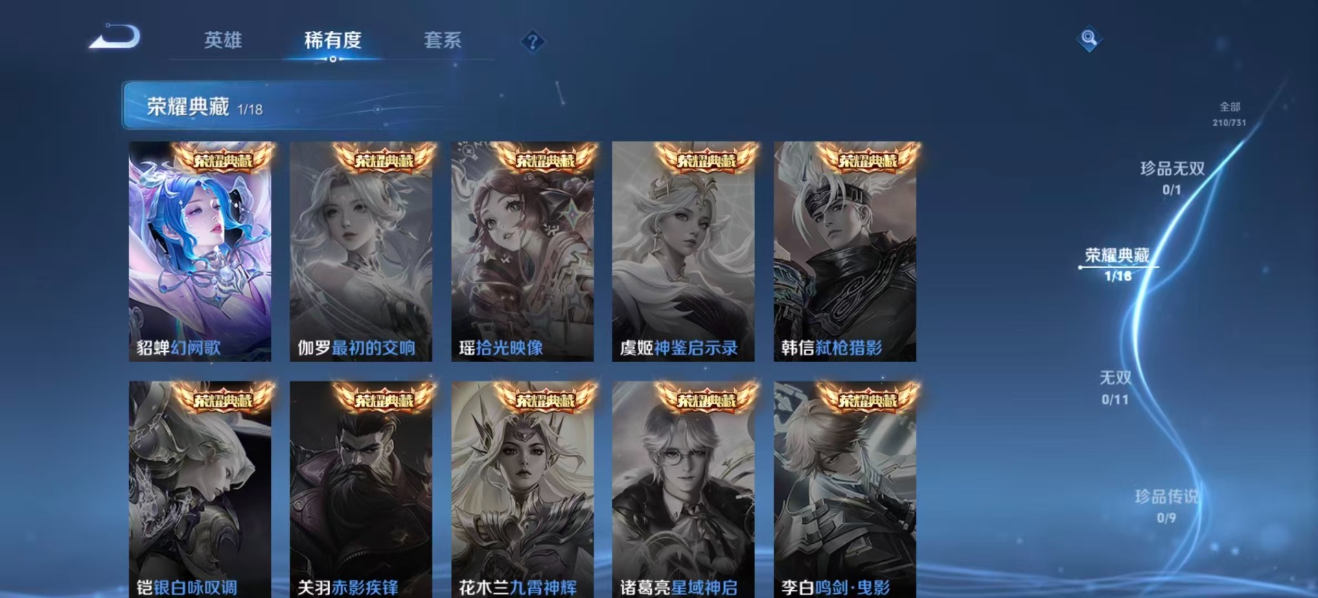 铠青龙志,貂蝉逐梦之音,上官婉儿梁祝,孙悟空大圣娶亲,孙悟空至尊宝,赵云引擎之心,韩信飞衡,韩信逐梦之影,关羽冰锋战神