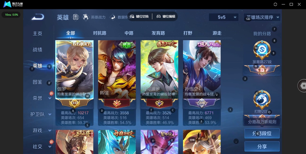 - [11497114]V2 1传说 100英雄 54皮肤 可修改实名 优质装备:久胜战神 史诗皮:冰冠公主,水果甜心