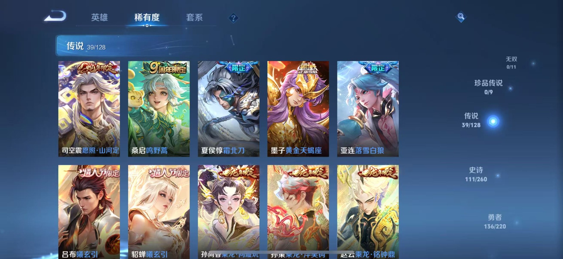 - PX_2093842-贵族8/皮肤223/传说17/史诗70/英雄125/女武神/胡桃夹子/地狱火/地狱之眼/冠军飞将/云鹰飞将/启明星使/炽阳神光/无双飞将/前尘镜/诗剑行/山海炽霜斩/山海苍雷引/齐天大圣/无限倾心男/乘龙铭钟鼎/桑启鸣野蒿/云缨幻光神枪/澜愿照九州拓/蒙犽顽岩魄/姜子牙天穹之誓/狄仁杰阴阳师/赵云皇家上将/墨子神迹守卫/降魔/钟无艳超时空战士/白起夜都怪侠/元歌无心/甄姬落雪