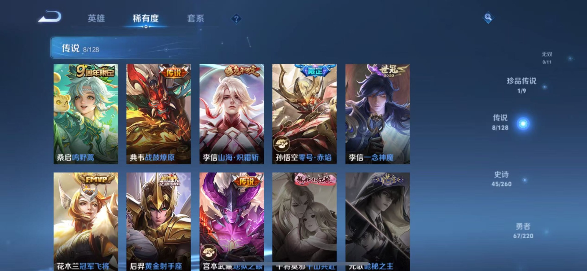 - [11519712]V7 1典藏 4传说 117英雄 151皮肤 可修改实名 优质装备:全息碎影(猴子典藏),黄金狮子座,仲夏夜之梦(大飞蛾),超时空战士-狄仁杰 珍宝阁皮:优雅恋人 限定皮:至尊宝,白鹤梁神女,白晶晶,时雨天司(水龙头),御风骁将(吕布年限),天狼溯光者,奔雷神使(牛魔年限),李小龙,默契交锋-花木兰,大圣娶亲,乒乒小将 史诗皮:灵蛊蚀心,龙之律动,百相守梦-黄忠,特工魅影,偶像歌手,龙骑士(小龙虾),修罗,水果甜心,天才门将,心灵骇客,功夫厨神,幽灵船长,鬼剑武藏,纤云弄巧,繁星吟游(呼啦呼啦),缤纷独角兽,乘风破浪,逐浪之夏,曙光守护者,鹰眼统帅,魅力维加斯