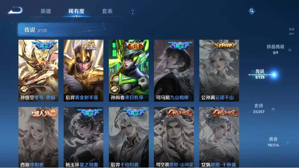 【传说皮肤】:孙尚香末日机甲,后羿黄金射手座,孙悟空零号赤焰