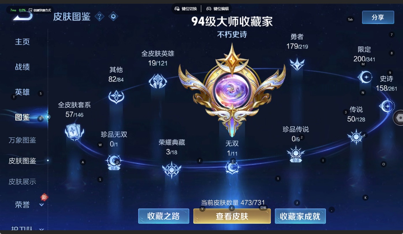 - PX_2095938-实名: 可修改 贵族等级: V8 英雄数: 123 皮肤数: 251 荣耀水晶: 无限飓风号 星传说: 幽冥火,幻舞叠翠 传说皮: 冠军飞将,猫影幻舞,久胜战神,地狱火,乞巧织情,游龙清影,淬星耀世,超时空战士-狄仁杰,山海·炽霜斩,山海·琳琅生,山海·苍雷引,炽翼辉光 限定皮: 遇见飞天,李小龙,祈雪灵祝,游园惊梦,梁祝,逐梦之光,凤求凰,寅虎·御盾,凤凰于飞,至尊宝,大圣
