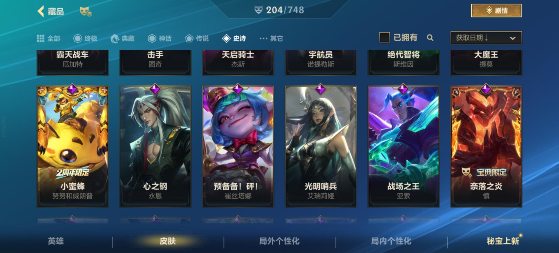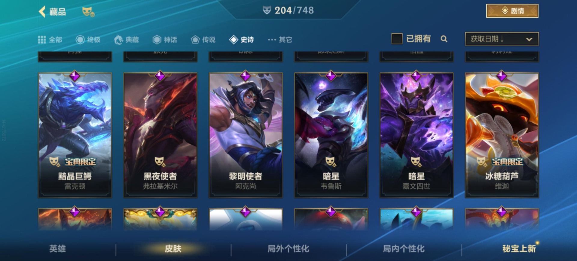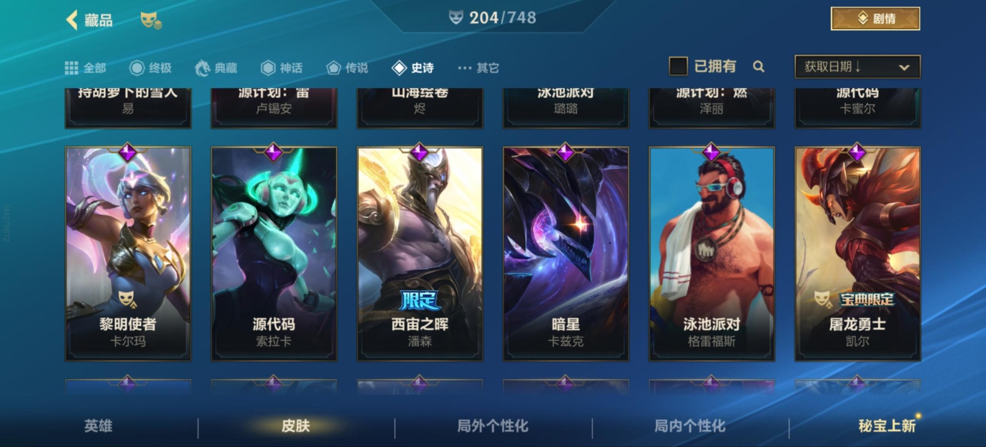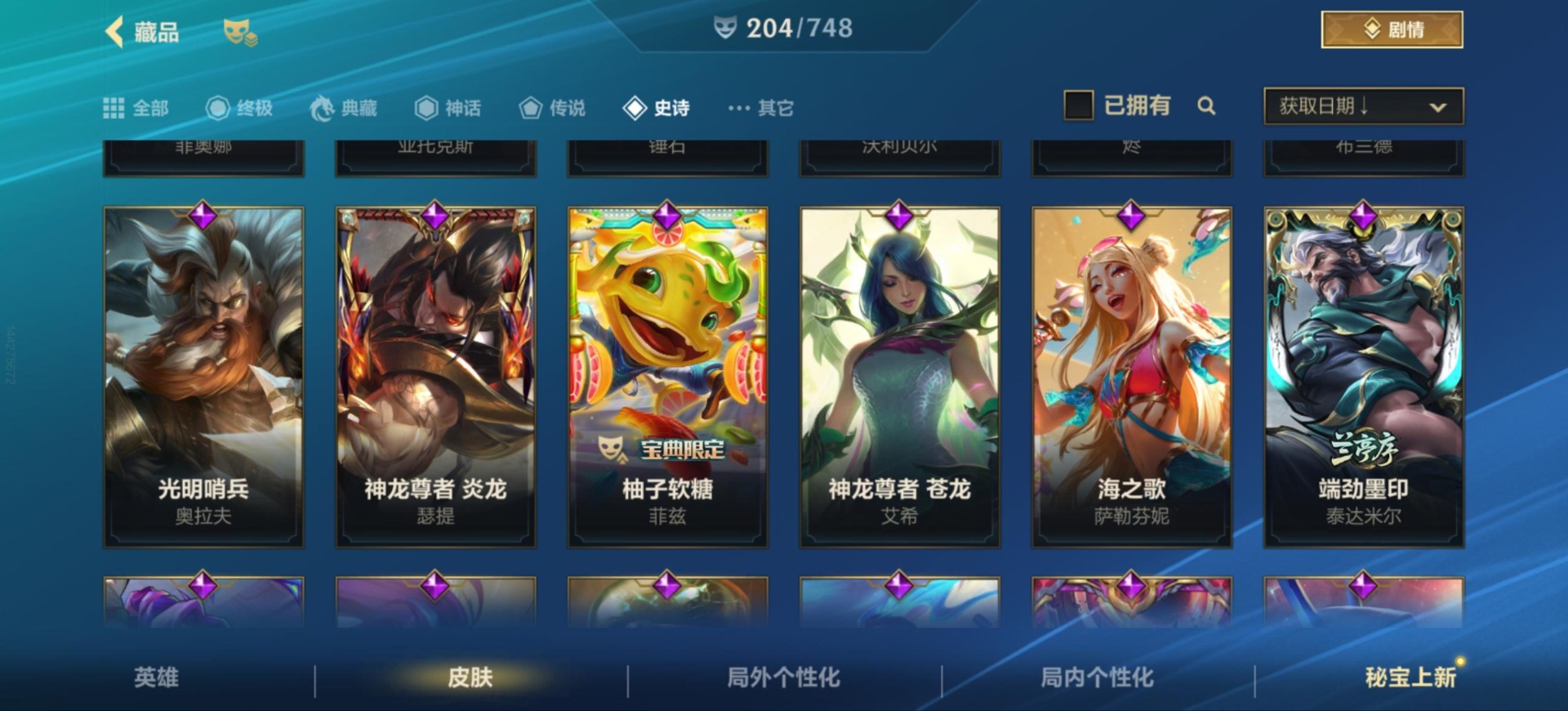 [12157581]25传说 97史诗 204皮肤 可二次 可修改实名 永久社交场景限制 优质装备:黑夜使者亚索,黎明使者锐雯,日蚀骑士蕾欧娜,神龙尊者 驭风啸龙,神王盖伦,源计划:联合,源计划:林,灵魂莲华腕豪,心之钢凯隐 传说皮:神龙尊者 圣龙 李青,春晖神女莫甘娜,斗魂无双亚索,黎明使者永恩