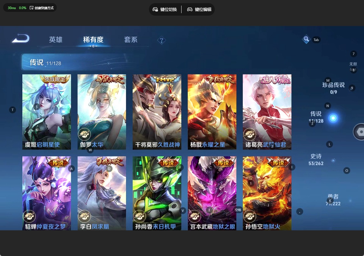 - [12085973]V8 2典藏 1珍品传说 15传说 123英雄 307皮肤 可修改实名 优质装备:全息碎影(猴子典藏),银白咏叹调(倪克斯侍卫),黄金射手座,炽阳神光,一念神魔,末日机甲-孙尚香(绿蚂蚱),地狱火,碎云,山海·炽霜斩(李信年限),霜月吟,澜逐花归海 珍品传说:时之奇旅-孙策 传说皮:幻光神枪 珍宝阁皮:妄想食味,蔷薇恋人 限定皮:愿照·九州拓(澜年限),愿照·岁时盈(虞姬年限),逐霄战戟,鸣野蒿,神威(电光马子),遇见飞天,高山流水,齐天大圣,五谷丰年,游园惊梦,李小龙,朱雀志(守约年限),一生所爱,大圣娶亲,匿光追影者,山海·玄木吟(马可年限) 史诗皮:鸭鸭历险记-刘禅,狼魂孤将,绮世丹青,瑰影绮梦,化蝶舞,龙之律动,雪豹·霜爪,藏狐·褐绒,百相守梦-周瑜,茶境仙,百相守梦-百里守约,百相守梦-黄忠,紫霞仙子,苍穹之光,白龙吟,黄金分割率,特工魅影,匿光侦查者,江河有灵,蒙恬荣光圣徽,无限星赏官,冰冠公主,末日机甲-吕布,猫狗日记-大乔,乱世虎臣,节奏热浪,修罗,女仆咖啡,摇滚巨星,水果甜心,绅士熊喵,天才门将,星夜王子,心灵骇客,暗隐猎兽者,幽灵船长,鬼剑武藏,心灵战警,乐园奇幻夜,天秀·启明,舞动绿茵,地狱岩魂,纤云弄巧,拒霜思,缤纷独角兽,乘风破浪,逐浪之夏,水晶猎龙者,箭羽风息,金属风暴,圣诞恋歌,鹰眼统帅,暗夜贵公子,魅力维加斯,黎明之约,赏金猎手,奇遇舞章,无心,未来纪元-赵云