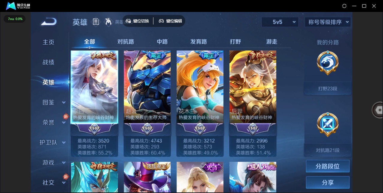 - [12297388]V7 2典藏 7传说 118英雄 153皮肤 可修改实名 优质装备:星空梦想(太空人),全息碎影(猴子典藏),一念神魔,淬星耀世,无双飞将,灼幽烈阳 传说皮:幻光神枪 珍宝阁皮:妄想食味 限定皮:愿照·九州拓(澜年限),鸣野蒿,李小龙 史诗皮:化蝶舞,龙之律动,茶境仙,破空之剑,芈月浮光幕影,蔬乡物语(鲁班七号),百相守梦-黄忠,织梦人,千年之狐,江河有灵,高渐离燃音魔法,偶像歌手,猫狗日记-孙策,猫狗日记-大乔,时之恋人-孙尚香,节奏热浪,水果甜心,绅士熊喵,星夜王子,心灵骇客,时之奇旅-安琪拉,暗隐猎兽者,幽灵船长,鬼剑武藏,乘风破浪,曙光守护者,圣诞狂欢,鹰眼统帅,未来纪元-赵云
