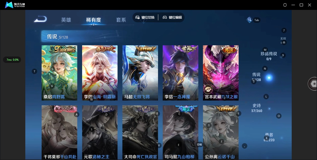 - [11771269]猴子典藏,久胜,紫霞,-可二次-108英雄-165皮肤-1典藏-7传说-31史诗 辉光之辰-后羿 街头霸王-韩信