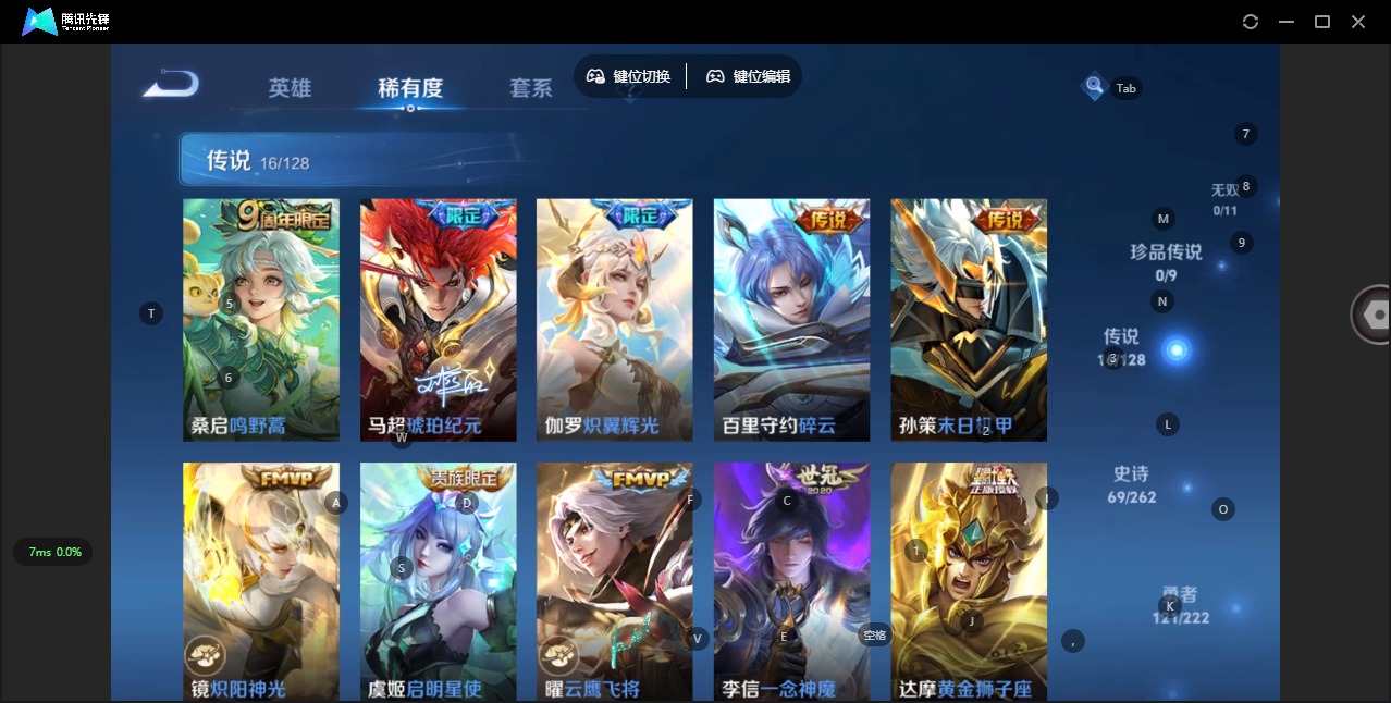 - [11526832]V7 4传说 123英雄 131皮肤 可修改实名 优质装备:黄金狮子座,久胜战神,一念神魔 传说皮:幻光神枪 限定皮:梅西,遇见飞天,李小龙,逐梦之光,猪悟能,大圣娶亲 史诗皮:紫霞仙子,白龙吟,黄金分割率,时之恋人-孙尚香,乱世虎臣,修罗,功夫厨神,鬼剑武藏,心灵战警,缤纷独角兽,水晶猎龙者,圣诞恋歌,鹰眼统帅,魅力维加斯