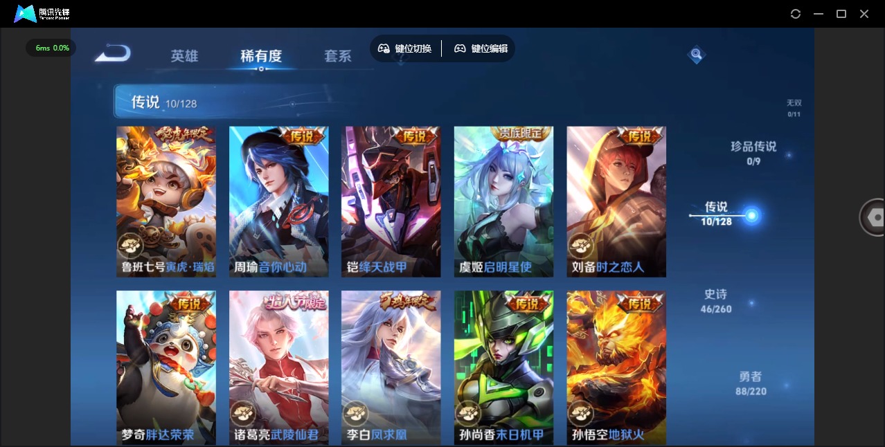 [12164530]V8 10传说 115英雄 194皮肤 可修改实名 优质装备:绛天战甲(鸡嘴战神),末日机甲-孙尚香(绿蚂蚱),地狱火,音你心动-周瑜,胖达荣荣,时之恋人-刘备(电焊工) 珍宝阁皮:蔷薇恋人,女武神,玩趣恶龙 限定皮:至尊宝,凤求凰(白切鸡),武陵仙君(小桃花),傲雪梅枪,神威(电光马子),飞衡(韩信年限),遇见飞天,五谷丰年,梁祝,李小龙,辉光之辰,如梦令-后羿,大圣娶亲,美猴王,寅虎·御盾(廉颇年限),寅虎·瑞焰(虎皮蛋子) 史诗皮:石田雨龙,白龙吟,黄金分割率,永昼,魅语,无限星赏官,冰冠公主,白蛇,龙骑士(小龙虾),末日机甲-吕布,摇滚巨星,水果甜心,心灵骇客,功夫厨神,德古拉伯爵,幽灵船长,鬼剑武藏,纤云弄巧,繁星吟游(呼啦呼啦),原初追逐者,圣诞恋歌,鹰眼统帅,寅虎·御盾,无心,未来纪元-赵云