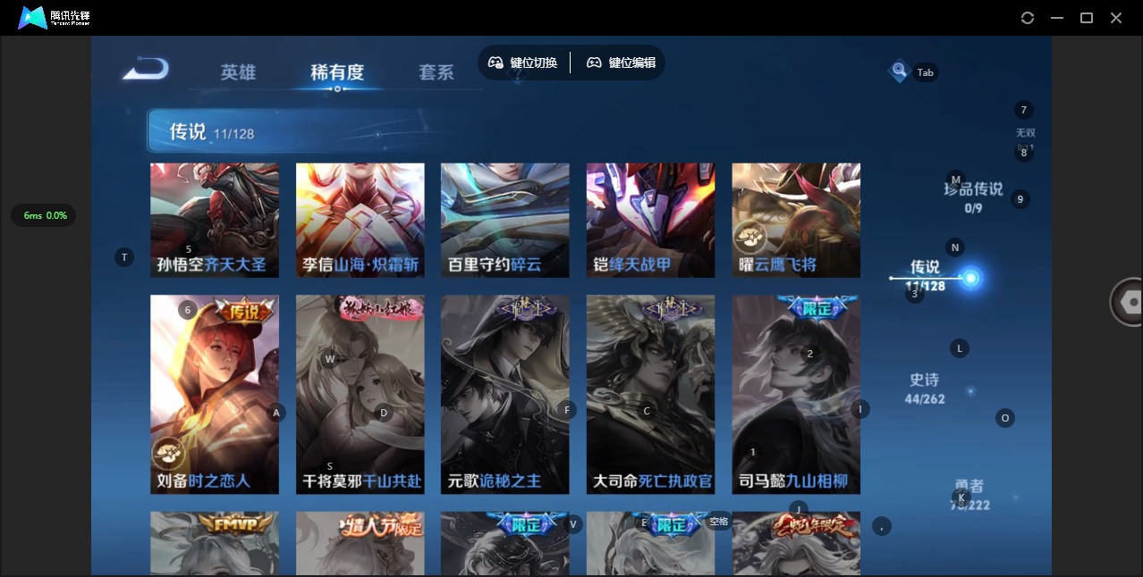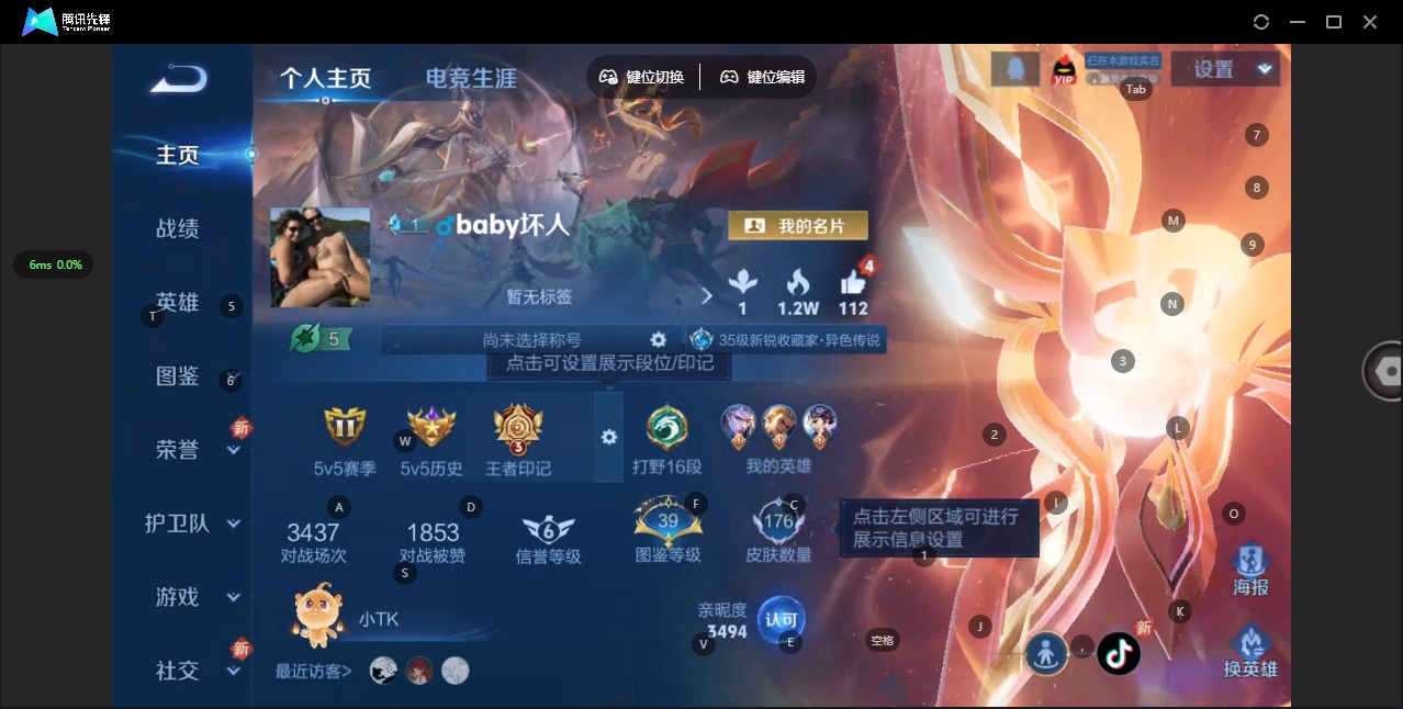 - PX_2095066-实名: 可修改 贵族等级: V3 英雄数: 108 皮肤数: 62 限定皮: 鸣野蒿,愿照·众生和