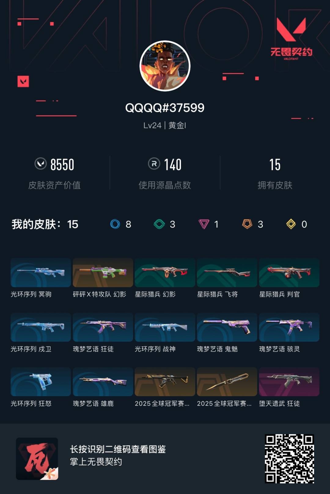[12164710]3橙皮 1紫皮 15皮肤 12英雄 24卡面 140已用源晶 黄金 优质装备:2025全球冠军赛 蝴蝶刀,幻影-砰砰X特攻队,2025全球冠军赛 狂徒 步枪皮肤:狂徒-堕天遗武