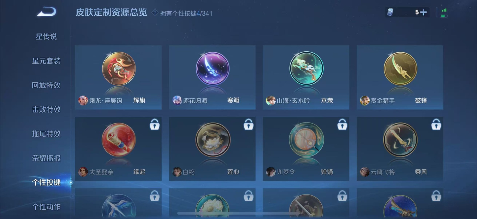 赵云百木心枪,后羿辉光之辰,露娜一生所爱,镜匿光追影者,庄周云端筑梦师,貂蝉逐梦之音,裴擒虎李小龙,裴擒虎寅虎·赤拳,上官婉儿梁祝,马可波罗山海·玄木吟,桑启鸣野蒿,猪八戒猪悟能,孙悟空孙行者,孙悟空大圣娶亲,孙悟空至尊宝,孙悟空美猴王,百里玄策白虎志,马超神威,韩信傲雪梅枪,韩信逐梦之影,百里守约朱雀志,虞姬霸王别姬,关羽武圣,关羽冰锋战神