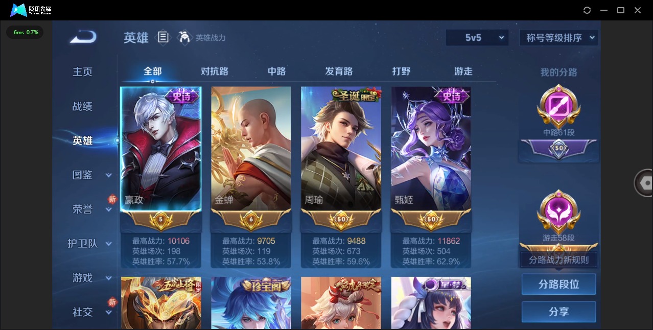 - [11527981]V5 4传说 106英雄 94皮肤 可修改实名 优质装备:绛天战甲(鸡嘴战神),云霓雀翎,地狱火 传说皮:典韦战鼓燎原 珍宝阁皮:胡桃夹子 史诗皮:鸭鸭历险记-刘禅,龙之律动,石田雨龙,戍鼓铭心,星界特工,百相守梦-黄忠,青蛇,乱世虎臣,摇滚巨星,水果甜心,鬼剑武藏,心灵战警,地狱岩魂,金属风暴,魅力维加斯