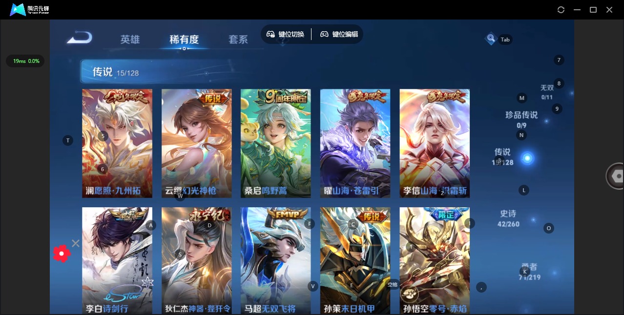 - [11651122]V7 1典藏 5传说 124英雄 280皮肤 可修改实名 荣耀水晶:无限飓风号(高达) 传说皮:乘龙·问璇玑(孙尚香年限),乘龙·铭钟鼎(赵云年限) 珍宝阁皮:妄想食味,蔷薇恋人,女武神 限定皮:夏侯惇霜北刀,遇见飞天,高山流水,齐天大圣,匿光决锋者,五谷丰年,李小龙,寅虎·御盾(廉颇年限),寅虎·瑞焰(虎皮蛋子) 史诗皮:星界战将,蔬乡物语(鲁班七号),乘龙·聚宝船(安琪拉年限),化蝶舞,紫霞仙子,苍穹之光,电玩小子(小书包),特工魅影,真我赫兹(百里守约),江河有灵,高渐离燃音魔法,百解令(蒙犽),蒙恬荣光圣徽,偶像歌手,魅语,电玩·爆裂旋风,暗夜猫娘,末日机甲-吕布,猫狗日记-大乔,乱世虎臣,节奏热浪,修罗,女仆咖啡,摇滚巨星,水果甜心,天才门将,星夜王子,心灵骇客,功夫厨神,德古拉伯爵,暗隐猎兽者,幽灵船长,鬼剑武藏,暗渊魔法,心灵战警,地狱岩魂,纤云弄巧,繁星吟游(呼啦呼啦),拒霜思,缤纷独角兽,乘风破浪,逐浪之夏,月团寄思,水晶猎龙者,曙光守护者,箭羽风息,金属风暴,原初追逐者,圣诞狂欢,圣诞恋歌,鹰眼统帅,魅力维加斯,黎明之约,寅虎·御盾,无心,未来纪元-赵云