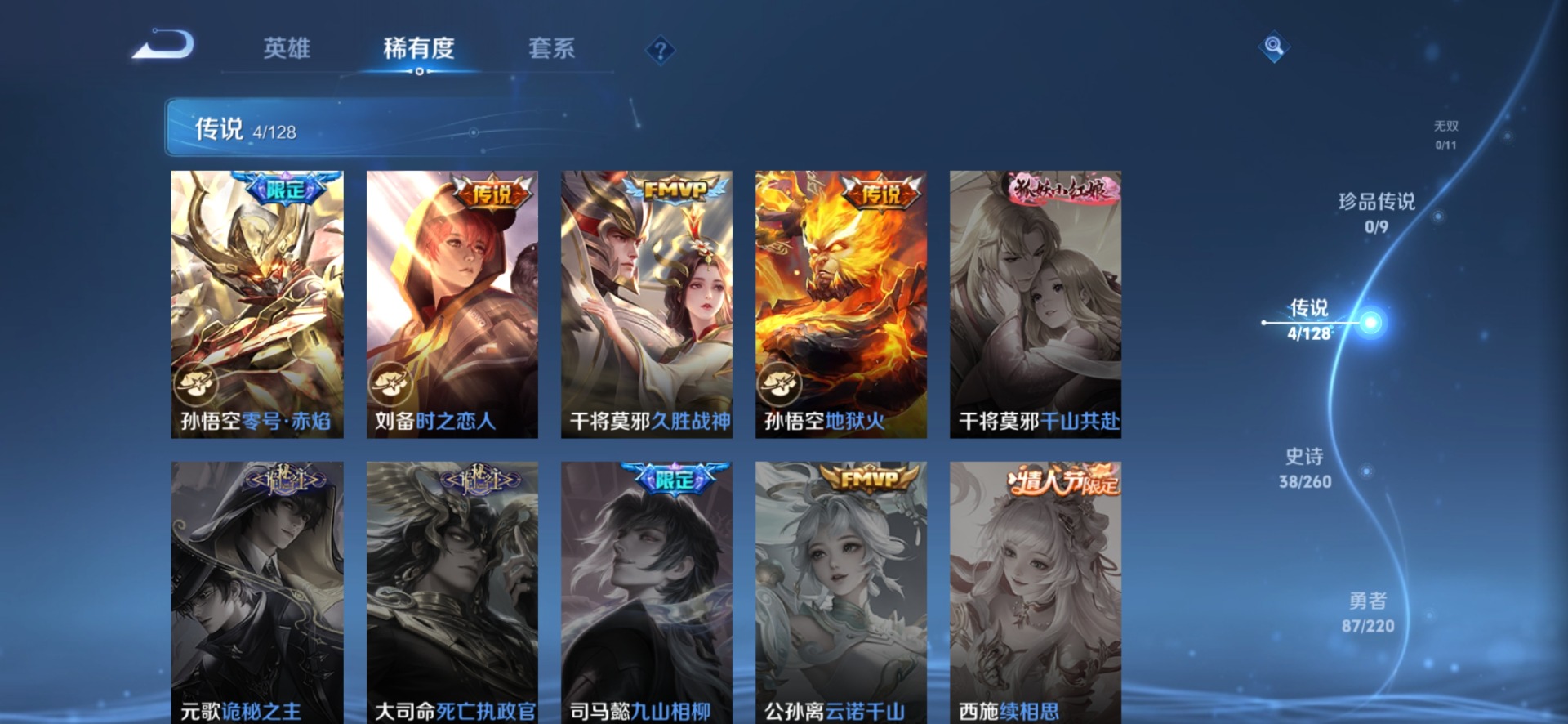 - [11559476]V9 2典藏 10传说 112英雄 139皮肤 典藏英雄武则天 可修改实名 优质装备:天鹅之梦(小乔典藏),杀手不太冷,冠军飞将,猫影幻舞,云霓雀翎,末日机甲-孙尚香(绿蚂蚱),仲夏夜之梦(大飞蛾),海洋之心 限定皮:白虎志(电光耗子),凤凰于飞,太华(伽罗年限),武陵仙君(小桃花),时之彼端,魔法小厨娘,玄嵩(庄周年限),梁祝,天狼绘梦者,如梦令-嫦娥 史诗皮:遇见神鹿,紫霞仙子,魅语,无限星赏官,偶像歌手,晚萤,猫狗日记-大乔,时之恋人-孙尚香,节奏热浪,修罗,女仆咖啡,水果甜心,天才门将,星夜王子,心灵骇客,功夫厨神,鬼剑武藏,舞动绿茵,繁星吟游(呼啦呼啦),缤纷独角兽,乘风破浪,逐浪之夏,圣诞狂欢,圣诞恋歌,鹰眼统帅,魅力维加斯,黎明之约,未来纪元-赵云