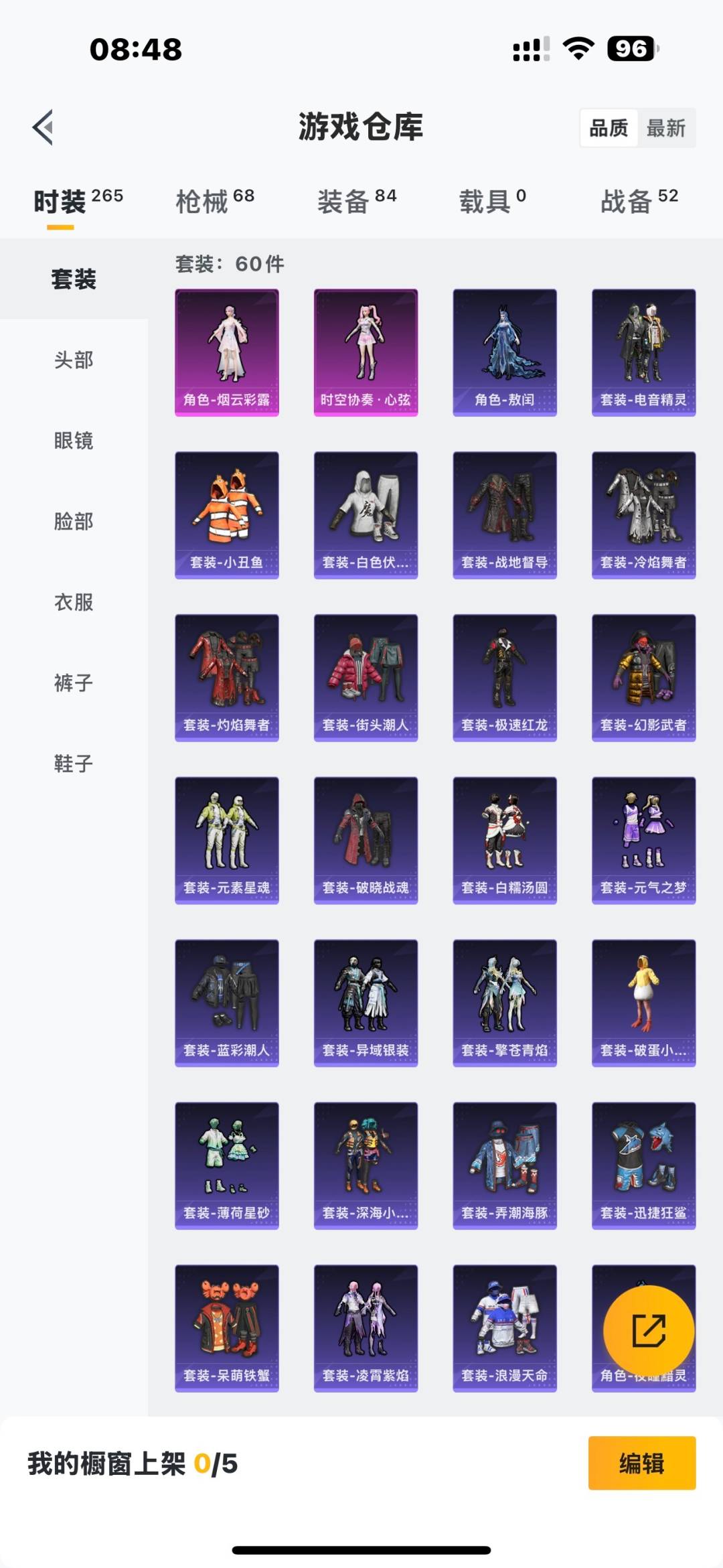 [12166456]2粉装 3特效枪 3印记 可二次 可修改实名 优质装备:时空协奏·心弦,AUG-暖羊咩咩,Kar98K-巳巳如意 热门装扮:烟云彩露,迅捷狂鲨,呆萌铁蟹,深海小丑鱼 稀有枪皮:DP-28-豹影疾电 五级特效枪:五级Kar98K-巳巳如意,五级DP-28-豹影疾电,五级AUG-暖羊咩咩 紫色装扮:SS31特训套装,云朵鹅,彩虹兔,雪绒豹,SS33特训套装,旭日情侣,幻影武者,冷焰舞者,电音精灵,战地督导,魅力单车,鹤鸣,黄色运动,黑色伏地魔,蝶变,香桃花海,野性山猫,长空猛禽,灼焰舞者,极速红龙,海岛探路者,绮丽涂鸦,缤纷果语,蓝彩潮人,街头潮人,白色伏地魔,破晓战魂,破蛋小黄鸡,鱼渊荷华,燕燕于飞,巳巳如意,海琴烟,风玲,竞技名士,异域银装,锦衣飞扬,浪漫天命,小丑鱼,耀粉歌者,大橘大利,星影赞美诗,白糯汤圆,SS32特训服(SS32特训套装),弄潮海豚 优质战备:忍者神龟降落伞,荧海星豚降落伞,鬼刀降落伞,洛神天依降落伞