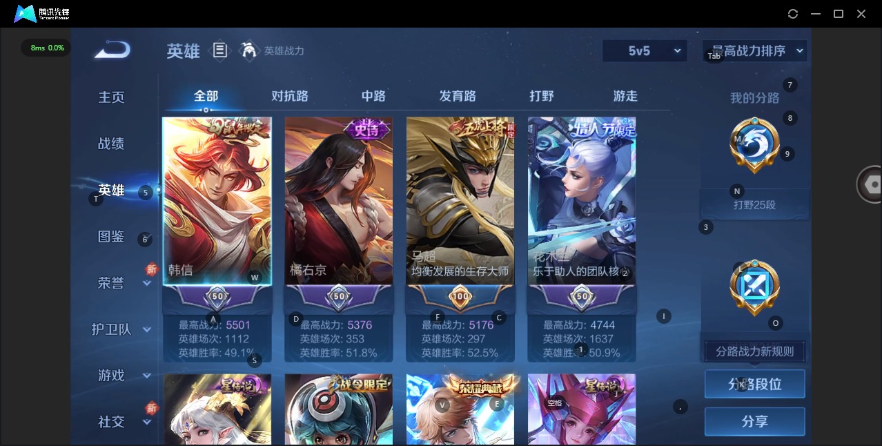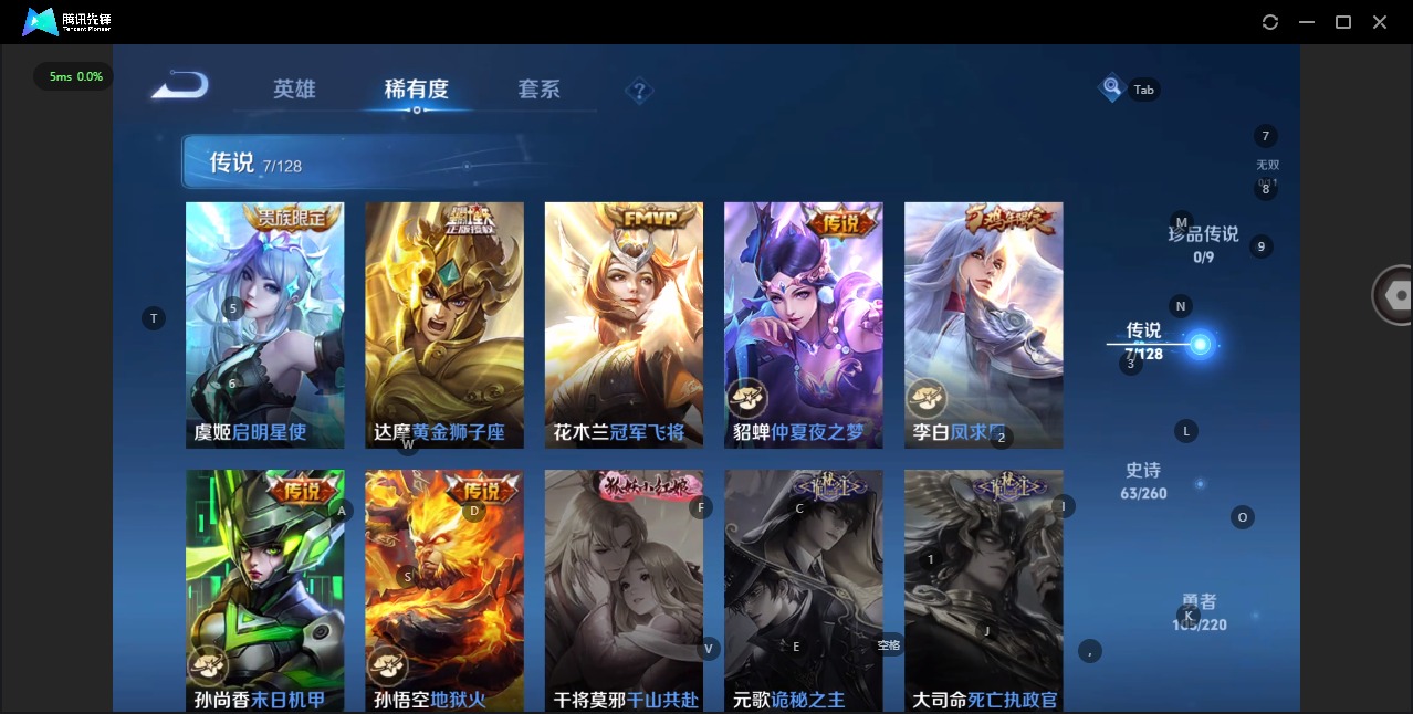 - [11607494]V7 1典藏 1无双 13传说 122英雄 147皮肤 可修改实名 优质装备:星域神启(倪克斯贼亮),器灵·螭龙剑,黄金狮子座,云鹰飞将(小将军),久胜战神,一念神魔,零号·赤焰,澜逐花归海 传说皮:祥瑞亨通,幻光神枪 珍宝阁皮:玩趣恶龙 限定皮:愿照·九州拓(澜年限),愿照·岁时盈(虞姬年限),愿照·山河定(司空震年限),逐霄战戟,鸣野蒿,傲雪梅枪,诗剑行,岱宗(典韦年限),天狼溯光者,逐梦之音,引擎之心,百木心枪,玉兔公主,山海·玄木吟(马可年限) 史诗皮:鸭鸭历险记-刘禅,器灵·浮梦炉,糖绘人间,化蝶舞,谪仙醉月,龙之律动,石田雨龙,茶境仙,怒海争锋,破空之剑,决胜骁骑,百相守梦-百里守约,紫霞仙子,电玩小子(小书包),黄金分割率,特工魅影,千年之狐,江河有灵,百解令(蒙犽),偶像歌手,女仆咖啡,水果甜心,天才门将,星夜王子,功夫厨神,暗隐猎兽者,幽灵船长,鬼剑武藏,心灵战警,天秀·启明,地狱岩魂,纤云弄巧,拒霜思,乘风破浪,逐浪之夏,水晶猎龙者,曙光守护者,箭羽风息,金属风暴,圣诞狂欢,鹰眼统帅,魅力维加斯,黎明之约,未来纪元-赵云