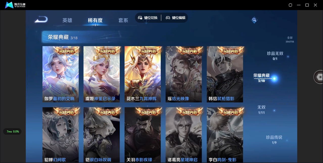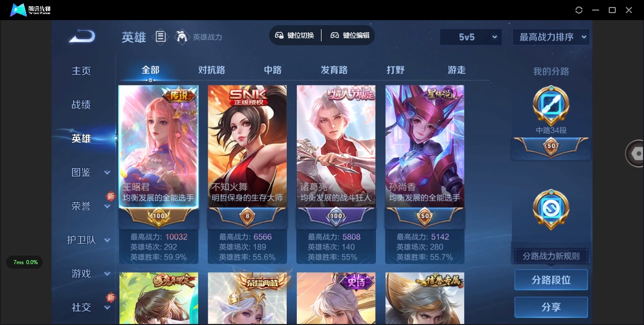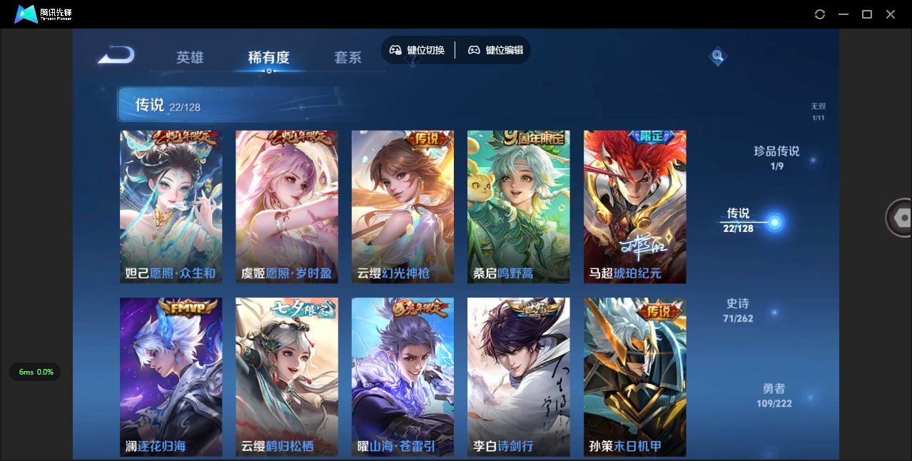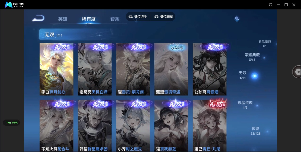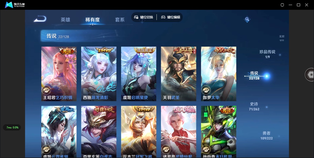 - [12270723]V7 1珍品传说 5传说 121英雄 119皮肤 可修改实名 女号 优质装备:大耳狗之梦,游龙清影(小青龙) 传说皮:云诺千山 限定皮:愿照·岁时盈(虞姬年限),愿照·众生和(妲己年限),逐霄战戟,鸣野蒿 史诗皮:化蝶舞,鸭鸭历险记-刘禅,龙之律动,茶境仙,石田雨龙,百相守梦-周瑜,百相守梦-黄忠,织梦人,遇见神鹿,白蛇,冰冠公主,女仆咖啡,水果甜心,绅士熊喵,心灵骇客,舞动绿茵,地狱岩魂,诗语江南,缤纷独角兽,逐浪之夏,圣诞狂欢,圣诞恋歌,鹰眼统帅,魅力维加斯