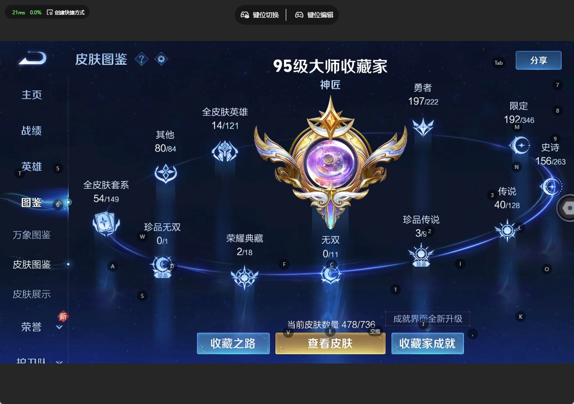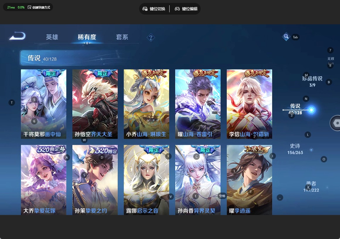 - PX_2107738-苹果q-有二次-贵8-124英雄-276皮肤-1典藏-16传说-74限定-14按键-贵族积分5.3-营地ID:1835329725【热皮:花木兰九霄神辉、司空震愿照山河定、澜愿照九州拓、铠冥王哈迪斯、诸葛亮时雨天司、赵云乘龙铭钟鼎、李信一念成魔】