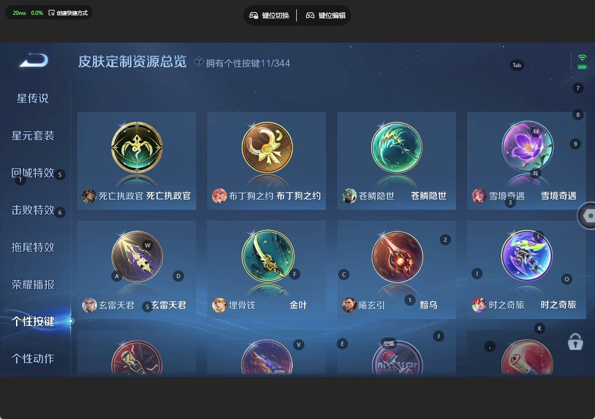 大乔猫狗日记,高渐离天秀·音浪,高渐离燃音魔法,刘邦德古拉伯爵,夏侯惇乘风破浪,阿轲暗夜猫娘,阿轲节奏热浪,沈梦溪匿光破解者,铠曙光守护者,刘备百相守梦,曹操幽灵船长,廉颇地狱岩魂,伽罗箭羽风息,小乔缤纷独角兽,小乔青蛇,孙尚香时之恋人,孙策猫狗日记,不知火舞魅语,赵怀真鹤归松栖,鲁班七号电玩小子,项羽苍穹之光,吕布圣诞狂欢,吕布末日机甲,露娜紫霞仙子,诸葛亮黄金分割率,刘禅电玩·爆裂旋风,司马懿暗渊魔法,刘禅天才门将,刘禅绅士熊喵,宫本武藏鬼剑武藏,公孙离无限星赏官,兰陵王暗隐猎兽者,貂蝉圣诞恋歌,花木兰水晶猎龙者,夏洛特永昼,李白千年之狐,安琪拉心灵骇客,蒙犽百解令,杨戬天秀·启明,西施诗语江南,白起星夜王子,白起苍鳞隐世,亚瑟心灵战警,嬴政摇滚巨星,嬴政暗夜贵公子,程咬金功夫厨神,百里玄策原初追逐者,雅典娜冰冠公主,雅典娜黎明之约,韩信白龙吟,李元芳匿光侦查者,百里守约特工魅影,李元芳逐浪之夏,墨子金属风暴,蔡文姬舞动绿茵,瑶遇见神鹿,澜赏金猎手,娜可露露晚萤,王昭君偶像歌手,嫦娥拒霜思,橘右京修罗