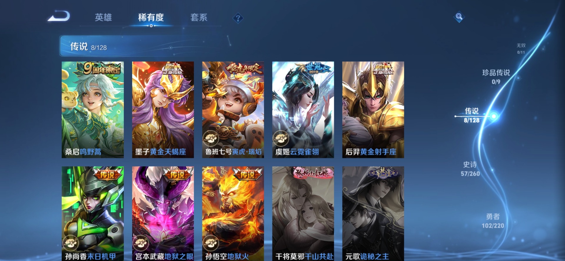 - [12312533]V5 2传说 123英雄 175皮肤 可修改实名 珍宝阁皮:妄想食味,蔷薇恋人 限定皮:愿照·九州拓(澜年限),鸣野蒿,五谷丰年,李小龙 史诗皮:器灵·浮梦炉,化蝶舞,茶境仙,百相守梦-黄忠,紫霞仙子,特工魅影,江河有灵,高渐离燃音魔法,冰冠公主,偶像歌手,电玩·爆裂旋风,末日机甲-吕布,乱世虎臣,节奏热浪,水果甜心,星夜王子,心灵骇客,德古拉伯爵,暗隐猎兽者,鬼剑武藏,心灵战警,地狱岩魂,乘风破浪,水晶猎龙者,金属风暴,原初追逐者,圣诞狂欢,圣诞恋歌,鹰眼统帅,暗夜贵公子,无心,未来纪元-赵云