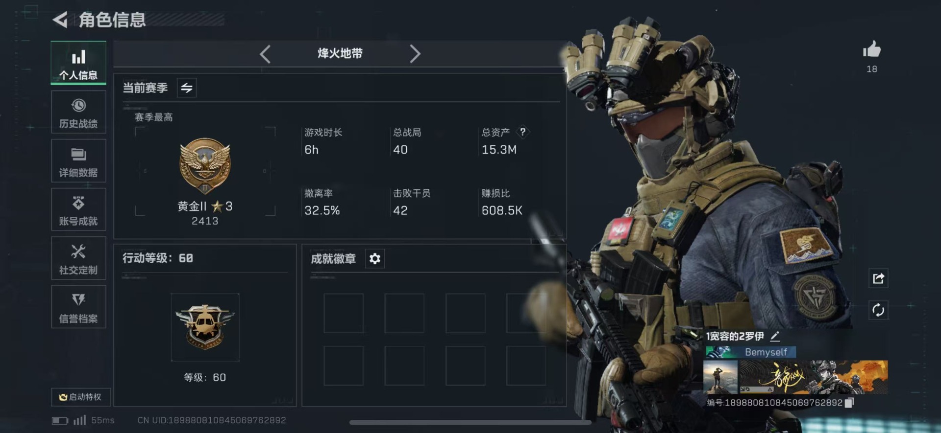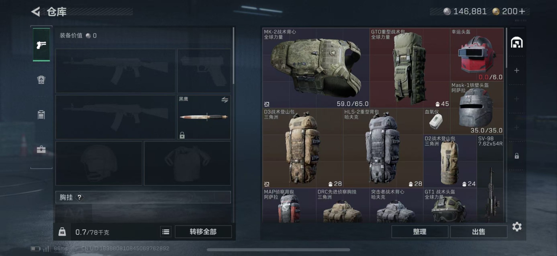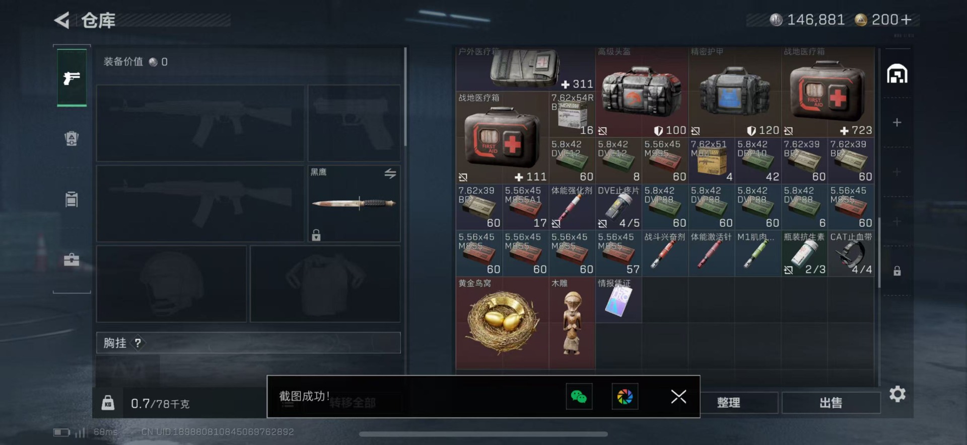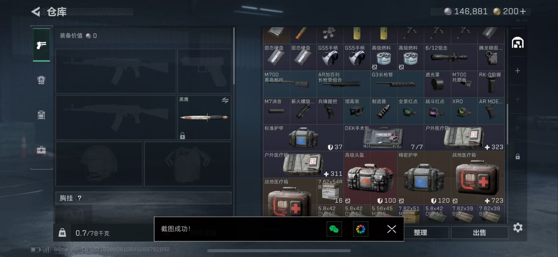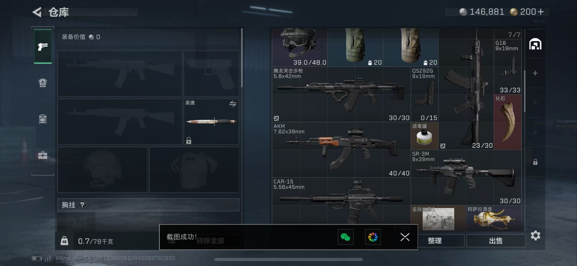 [12168879]总资产:15.3M 9传说枪械 哈夫币:146.881K 可二次 可修改实名 烽火地带段位:黄金 全面战场段位:无段位 传说武器皮肤:Vector冲锋枪-能天使-午夜邮差,SCAR-H战斗步枪-启航,勇士冲锋枪-能天使-午夜邮差,M4A1突击步枪-阿米娅,CAR-15突击步枪-阿米娅,UZI冲锋枪-特斯拉线圈,AK-12突击步枪-特斯拉线圈,SR-3M紧凑突击步枪-特斯拉线圈,SMG45冲锋枪-骑士 史诗武器皮肤:AUG突击步枪-蝮蛇,G3战斗步枪-战场英杰,SV-98狙击步枪-林中猎手,M1014霰弹枪-林中猎手,SVD狙击步枪-暗夜猎手,M16A4突击步枪-竞赛选手,P90冲锋枪-紧急戒备,SVD狙击步枪-阿萨拉工艺,MP5冲锋枪-深海恐惧,勇士冲锋枪-深海恐惧,SG552突击步枪-深海恐惧,AKM突击步枪-林中猎手,PKM通用机枪-英雄