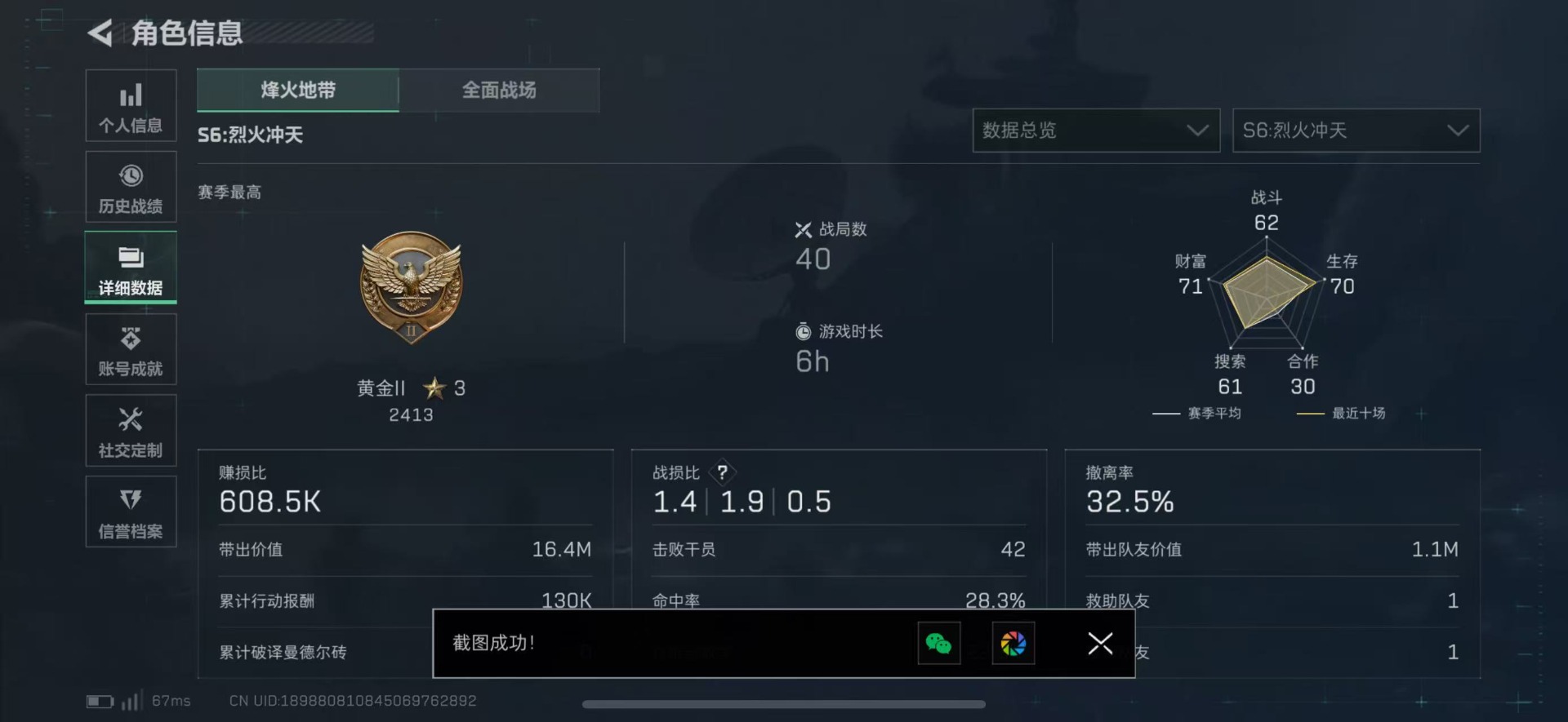 - [11686734]总资产:34.2M 1近战传说 8传说枪械 哈夫币:3.929K 高级安全箱(9.17到期) 可二次 可修改实名 优质装备:近战-北极星 烽火地带段位:铂金 全面战场段位:无段位 传说武器皮肤:SR-25射手步枪-水墨云图,CAR-15突击步枪-阿米娅,复合弓-黑-天际线,QCQ171冲锋枪-北极星,勇士冲锋枪-能天使-午夜邮差,725双管霰弹枪-送葬人-无题密令,K437突击步枪-北极星 史诗武器皮肤:SR-3M紧凑突击步枪-英雄,M16A4突击步枪-竞赛选手,PKM通用机枪-荒野求生,SV-98狙击步枪-林中猎手,PSG-1射手步枪-无垢,QBZ95-1突击步枪-曙光,Vector冲锋枪-阿萨拉文明