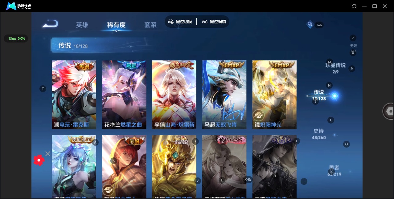 - [11882479]V7 1典藏 12传说 125英雄 264皮肤 可修改实名 优质装备:幻阙歌(貂蝉典藏),黄金狮子座,冠军飞将,一念神魔,零号·赤焰,地狱之眼,时之恋人-刘备(电焊工),音你闪耀(rap皮),鹤归松栖(云缨) 传说皮:云诺千山,幻光神枪 珍宝阁皮:优雅恋人,女武神 限定皮:愿照·千秋盛(女娲年限),至尊宝,白虎志(电光耗子),神威(电光马子),遇见飞天,高山流水,五谷丰年,冰锋战神,梁祝,御风骁将(吕布年限),烈魂,李小龙,如梦令-后羿,猪悟能,大圣娶亲 史诗皮:飞车小橘子,器灵·浮梦炉,化蝶舞,雪豹·霜爪,电玩小子(小书包),千年之狐,完美假期,匿光侦查者,偶像歌手,龙骑士(小龙虾),乱世虎臣,节奏热浪,修罗,女仆咖啡,摇滚巨星,水果甜心,时之奇旅-安琪拉,功夫厨神,德古拉伯爵,暗隐猎兽者,幽灵船长,鬼剑武藏,心灵战警,舞动绿茵,地狱岩魂,纤云弄巧,繁星吟游(呼啦呼啦),逐浪之夏,水晶猎龙者,金属风暴,原初追逐者,圣诞恋歌,鹰眼统帅,魅力维加斯,黎明之约,未来纪元-赵云