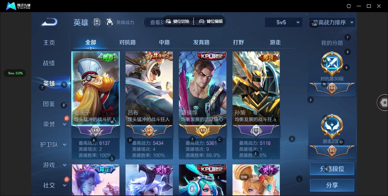 - PX_2089015- 可二次 V8 贵族积分59245 安卓QQ/222皮肤/125英雄/0典藏/0珍品无双/0无双/3珍品传说/20传说/70史诗/9稀有英雄 游走42段 历史( 省标廉颇 ) 【3 珍品传说】,酷洛米之心 安琪拉,大耳狗之梦 瑶,兔狲·蓬尾 张飞, 【20 传说皮肤】,胖达荣荣 梦奇,启明星使 虞姬,逐花归海 澜,电玩·雷克斯 澜,无双飞将 马超,浮生妄 夏洛特,落雪白狼