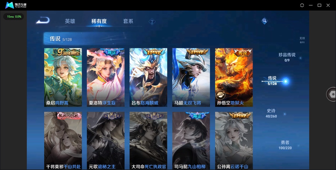 - PX_2104868-Q/最强王者/168皮肤/123英雄/0典藏/0珍品无双/0无双/0珍品传说/6传说/48史诗/7稀有英雄 【6 传说皮肤】李逍遥 曜,齐天大圣 孙悟空,武陵仙君 诸葛亮,炽阳神光 镜,一念神魔 李信,妄想实况 马可波罗, 【48 史诗皮肤】奔雷神使 牛魔,末日机甲 吕布,百解令 蒙犽,高山流水 庄周,匿光追影者 镜,奇遇舞章 艾琳,唐三藏 金蝉,暗影游猎 马可波罗,冰霜恋