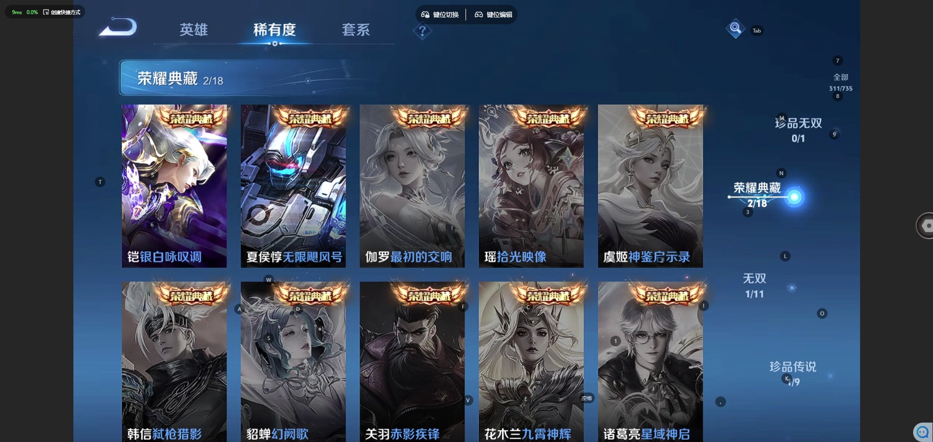 [12170618]V9 2典藏 1无双 1珍品传说 38传说 125英雄 311皮肤 可修改实名 优质装备:无限飓风号(高达),银白咏叹调(倪克斯侍卫),小乔时之魔女(小乔无双),黄金狮子座,黄金射手座,绛天战甲(鸡嘴战神),猫影幻舞,久胜战神,炽阳神光,一念神魔,云霓雀翎,地狱火,仲夏夜之梦(大飞蛾),零号·赤焰,地狱之眼,飞鸢探春,李逍遥,时之恋人-刘备(电焊工),遇见胡旋,末日机甲-孙策,挚爱之约,无双飞将,神器·狴犴令,山海·炽霜斩(李信年限),山海·苍雷引(电光曜子),霜月吟,黄金天蝎座 珍品传说:时之奇旅-孙策 传说皮:吕布曦玄引,续相思,星之鸣奏,祥瑞亨通 珍宝阁皮:万物之道,蔷薇恋人 限定皮:愿照·九州拓(澜年限),愿照·岁时盈(虞姬年限),愿照·山河定(司空震年限),陌上桑,鸣野蒿,异界灵契(白毛香),白鹤梁神女,白晶晶,飞衡(韩信年限),瑞麟志(木兰年限),遇见飞天,高山流水,诗剑行,五谷丰年,青龙志(铠年限),天狼运算者,游园惊梦,梁祝,烈魂,祈雪灵祝(雪兔子),李小龙,逐梦之光,朱雀志(守约年限),霸王别姬-虞姬,默契交锋-兰陵王,默契交锋-花木兰,孙行者,一生所爱,大圣娶亲,引擎之心,寅虎·瑞焰(虎皮蛋子),玉兔公主,唐三藏,山海·玄木吟(马可年限) 史诗皮:器灵·浮梦炉,化蝶舞,星界战将,石田雨龙,茶境仙,星界特工,东方月初,怒海争锋,百相守梦-百里守约,遇见神鹿,紫霞仙子,电玩小子(小书包),白龙吟,黄金分割率,特工魅影,千年之狐,永昼,冰冠公主,末日机甲-莱西奥,青蛇,高渐离燃音魔法,蒙恬荣光圣徽,魅语,晚萤,末日机甲-吕布,猫狗日记-孙策,猫狗日记-大乔,时之恋人-孙尚香,乱世虎臣,节奏热浪,修罗,女仆咖啡,摇滚巨星,水果甜心,绅士熊喵,天才门将,星夜王子,心灵骇客,时之奇旅-安琪拉,功夫厨神,德古拉伯爵,暗隐猎兽者,幽灵船长,鬼剑武藏,心灵战警,乐园奇幻夜,天秀·启明,舞动绿茵,地狱岩魂,缤纷独角兽,乘风破浪,逐浪之夏,龙鼓争鸣,水晶猎龙者,曙光守护者,箭羽风息,金属风暴,圣诞狂欢,圣诞恋歌,鹰眼统帅,暗夜贵公子,魅力维加斯,未来纪元-赵云