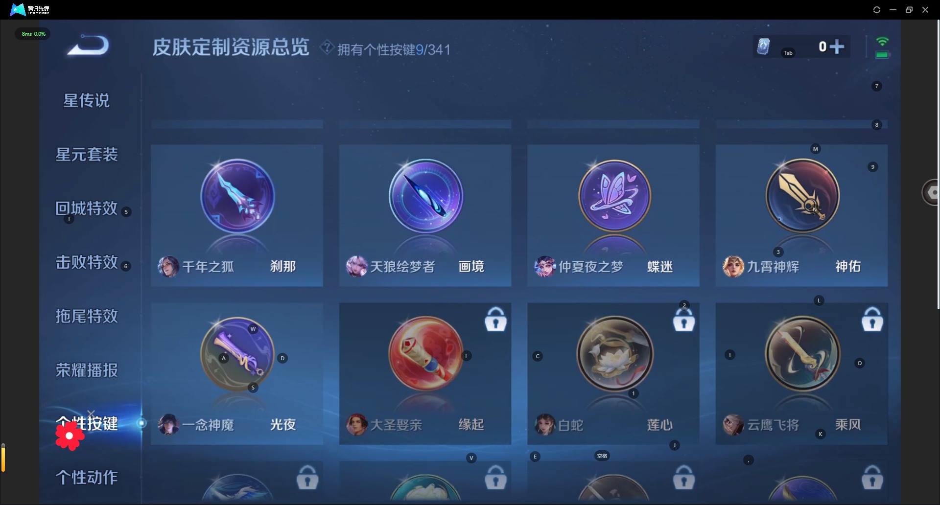 铠青龙志,不知火舞绯月行,露娜一生所爱,诸葛亮时雨天司,貂蝉逐梦之音,裴擒虎李小龙,裴擒虎天狼狩猎者,上官婉儿梁祝,上官婉儿神器·万象笔,上官婉儿天狼绘梦者,花木兰默契交锋,马可波罗山海·玄木吟,猪八戒猪悟能,孙悟空美猴王,百里玄策白虎志,赵云引擎之心,虞姬霸王别姬,娜可露露前尘镜,嫦娥如梦令,关羽冰锋战神