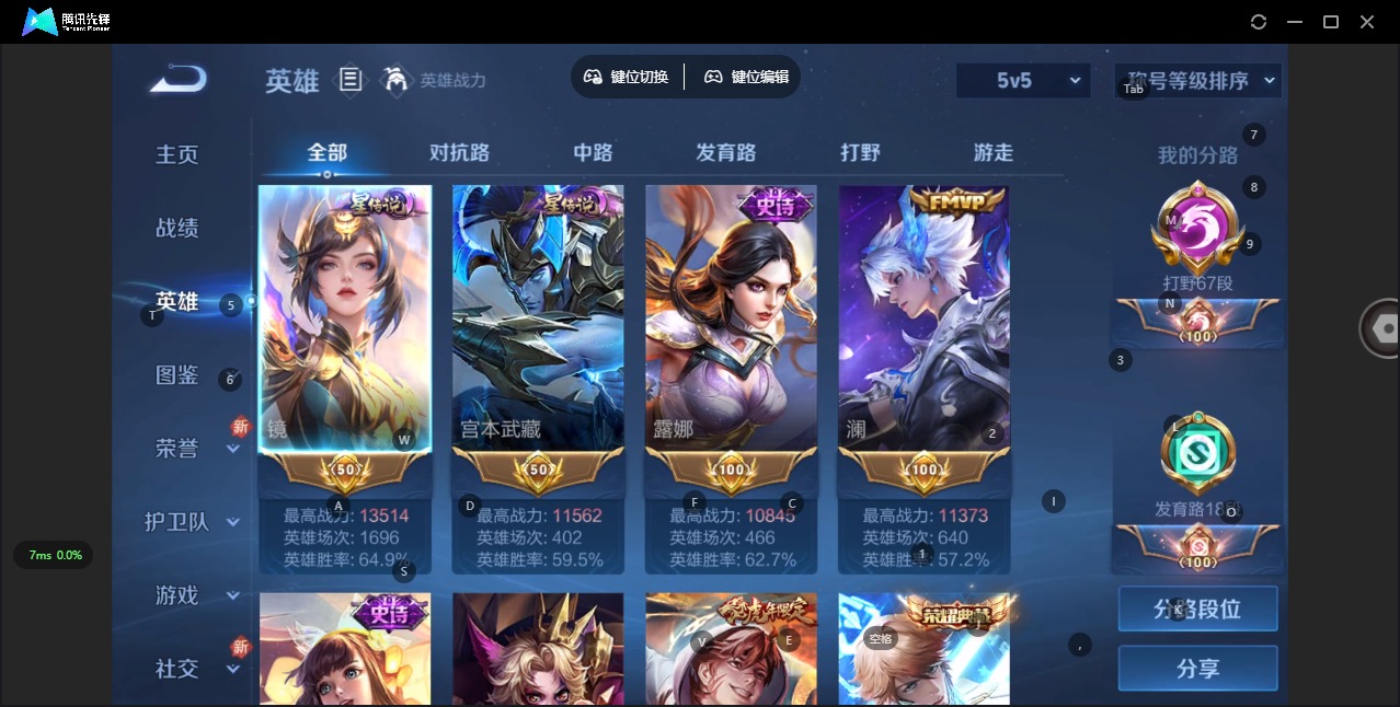 - [12202626]V7 1典藏 7传说 125英雄 202皮肤 可修改实名 优质装备:神鉴启示录,云鹰飞将(小将军),淬星耀世,音你闪耀(rap皮),涂山容容 传说皮:幻光神枪 珍宝阁皮:万物之道,蔷薇恋人 限定皮:愿照·九州拓(澜年限),愿照·岁时盈(虞姬年限),鸣野蒿,高山流水,五谷丰年,青龙志(铠年限),御风骁将(吕布年限),烈魂,虎魄,李小龙,大圣娶亲 史诗皮:化蝶舞,龙之律动,百相守梦-黄忠,紫霞仙子,黄金分割率,冰冠公主,蒙恬荣光圣徽,魅语,偶像歌手,暗夜猫娘,修罗,女仆咖啡,摇滚巨星,水果甜心,天才门将,星夜王子,心灵骇客,功夫厨神,德古拉伯爵,幽灵船长,鬼剑武藏,心灵战警,舞动绿茵,地狱岩魂,纤云弄巧,拒霜思,缤纷独角兽,乘风破浪,逐浪之夏,月团寄思,水晶猎龙者,箭羽风息,金属风暴,原初追逐者,圣诞狂欢,圣诞恋歌,鹰眼统帅,王者之锤,暗夜贵公子,魅力维加斯,黎明之约,未来纪元-赵云
