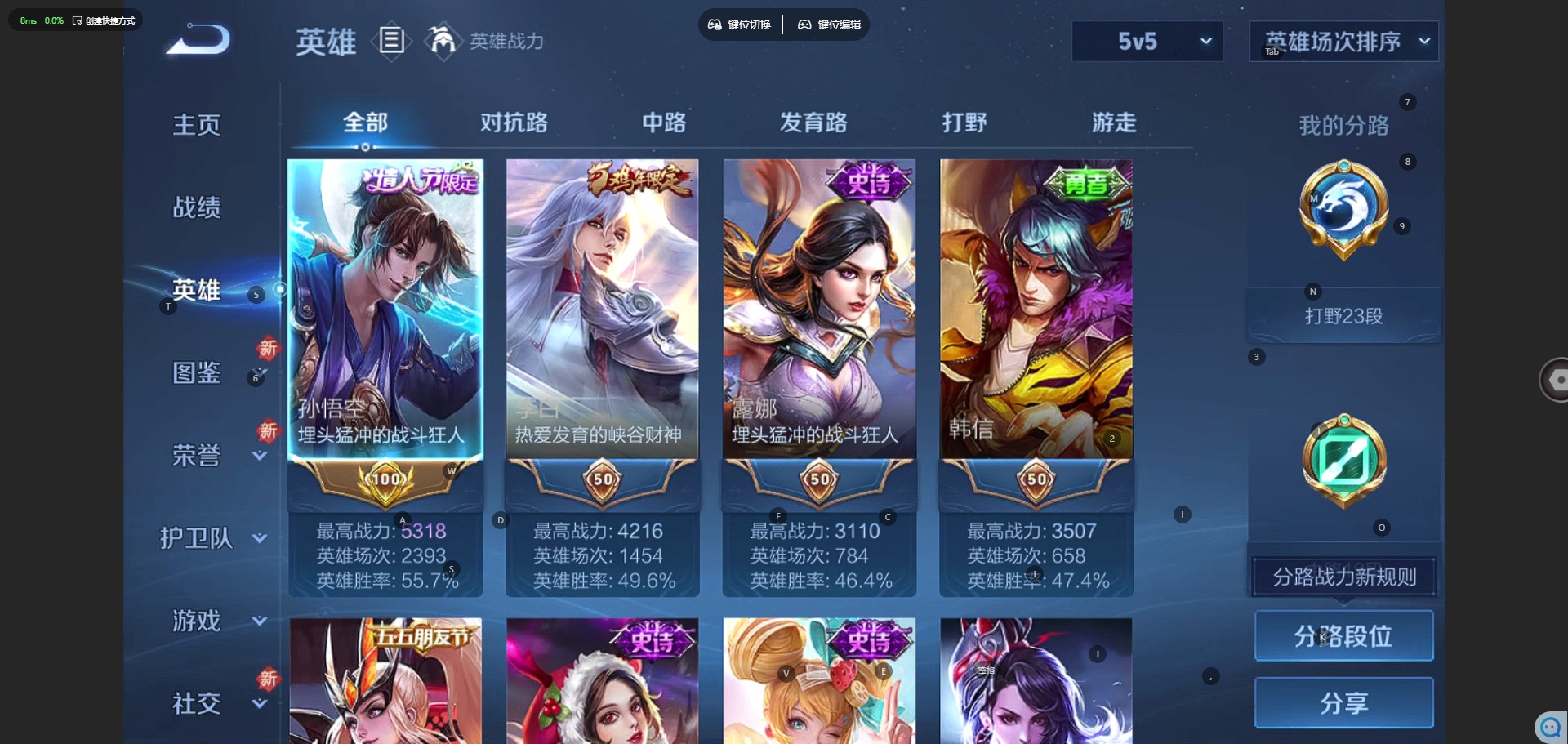 - [12296301]V8 1典藏 11传说 124英雄 253皮肤 可修改实名 优质装备:鸣剑·曳影,猫影幻舞,一念神魔,地狱火,零号·赤焰,地狱之眼,李逍遥,时之恋人-刘备(电焊工),山海·苍雷引(电光曜子) 珍宝阁皮:优雅恋人,玩趣恶龙 限定皮:至尊宝,白晶晶,神威(电光马子),匿光决锋者,怒海麟威,五谷丰年,烈魂,李小龙,默契交锋-花木兰,猪悟能,天魔缭乱,冰霜恋舞曲,云端筑梦师,百木心枪,唐三藏 史诗皮:黄金分割率,千年之狐,永昼,龙骑士(小龙虾),百解令(蒙犽),晚萤,魅语,冰冠公主,偶像歌手,电玩·爆裂旋风,匿光破解者,末日机甲-吕布,猫狗日记-孙策,节奏热浪,修罗,女仆咖啡,水果甜心,绅士熊喵,天才门将,星夜王子,心灵骇客,功夫厨神,德古拉伯爵,暗隐猎兽者,幽灵船长,鬼剑武藏,暗渊魔法,舞动绿茵,纤云弄巧,拒霜思,乘风破浪,龙鼓争鸣,水晶猎龙者,曙光守护者,热力回旋,唤灵魅影,金属风暴,圣诞狂欢,圣诞恋歌,鹰眼统帅,魅力维加斯,赏金猎手,天秀·音浪,滕王阁序,无心,未来纪元-赵云