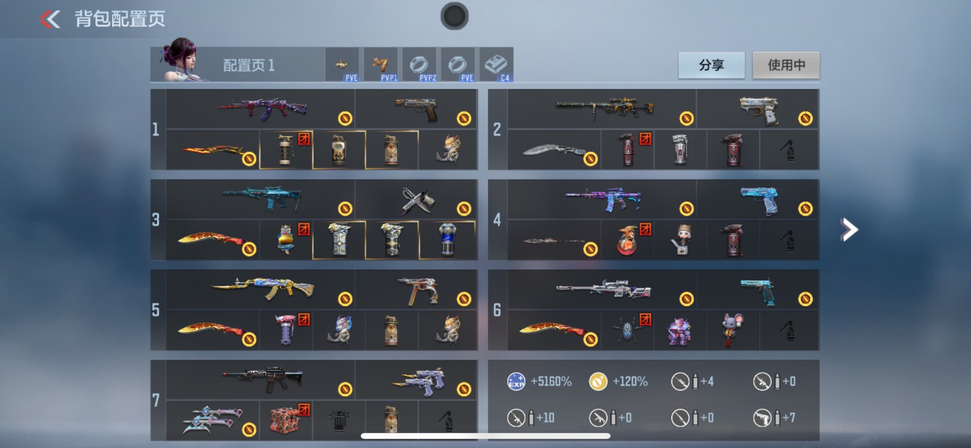 - PX_2081126-时装数: 537 枪械数: 187 战备数: 144 热门装扮: 太空嘟嘟,奶芙汪汪,飒粉甜心,闲梦青缨,蜜语绒猫,烟云彩露,电磁星,星穹咏叹调 稀有枪皮: SCAR-L-锦绣绵绵【5级】,SPAS-12蜜语绒猫【7级】,Kar98K-巳巳如意【5级】