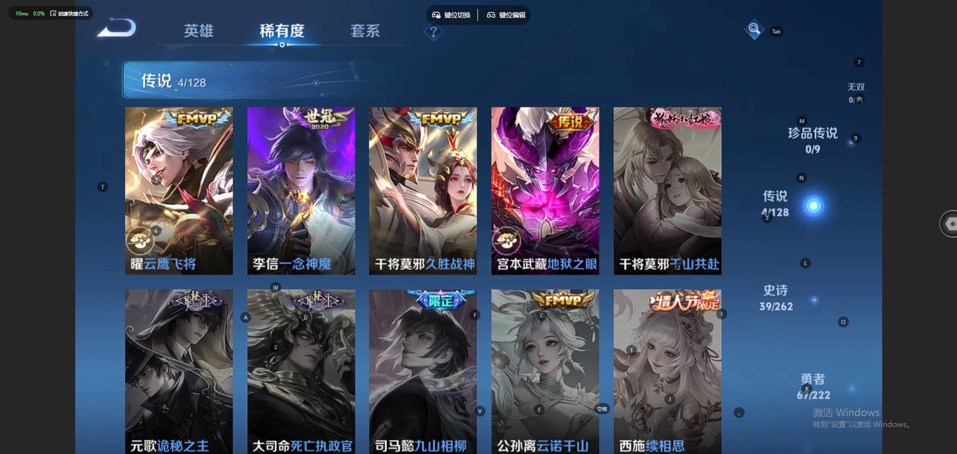 - [12167444]V7 1典藏 3传说 109英雄 138皮肤 可修改实名 安全保护中 优质装备:星域神启(倪克斯贼亮),遇见胡旋 珍宝阁皮:女武神 限定皮:异界灵契(白毛香),傲雪梅枪,时之彼端,高山流水,五谷丰年,天狼运算者,梁祝,祈雪灵祝(雪兔子),李小龙,女儿国国王 史诗皮:百相守梦-黄忠,遇见神鹿,冰冠公主,白蛇,青蛇,无限星赏官,晚萤,偶像歌手,猫狗日记-孙策,猫狗日记-大乔,水果甜心,心灵骇客,时之奇旅-安琪拉,暗隐猎兽者,纤云弄巧,繁星吟游(呼啦呼啦),拒霜思,缤纷独角兽,乘风破浪,逐浪之夏,金属风暴,圣诞恋歌,鹰眼统帅,魅力维加斯