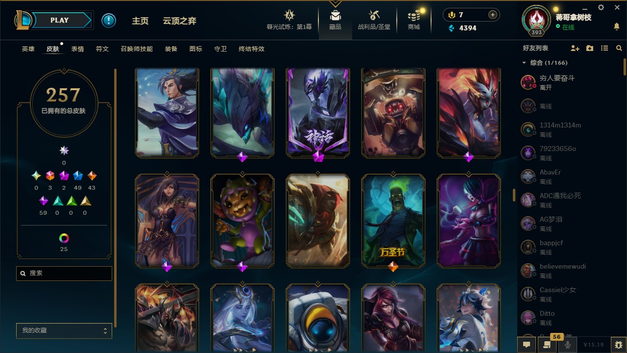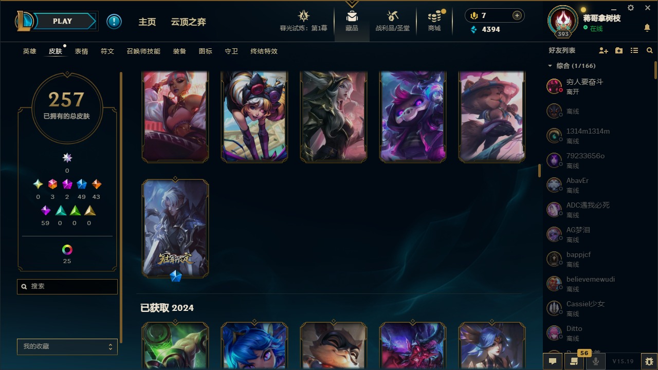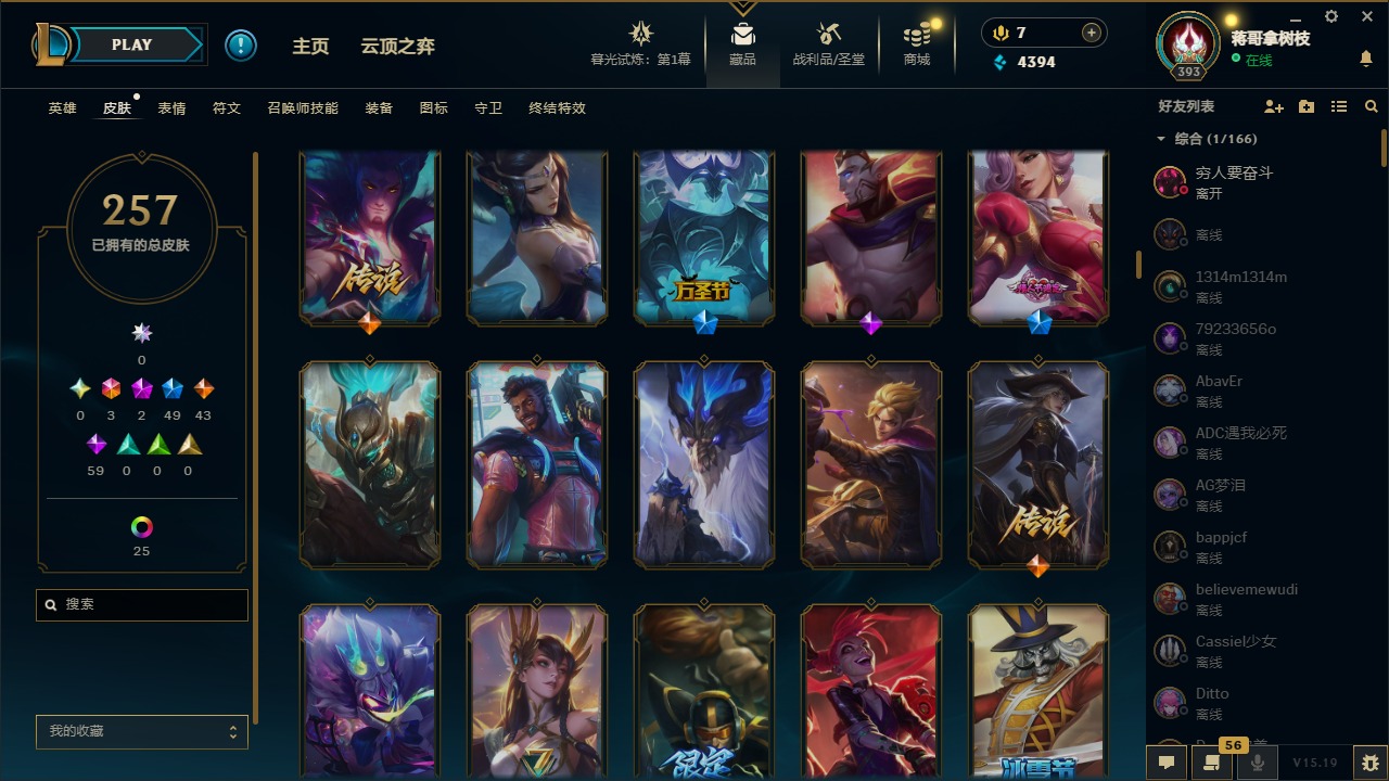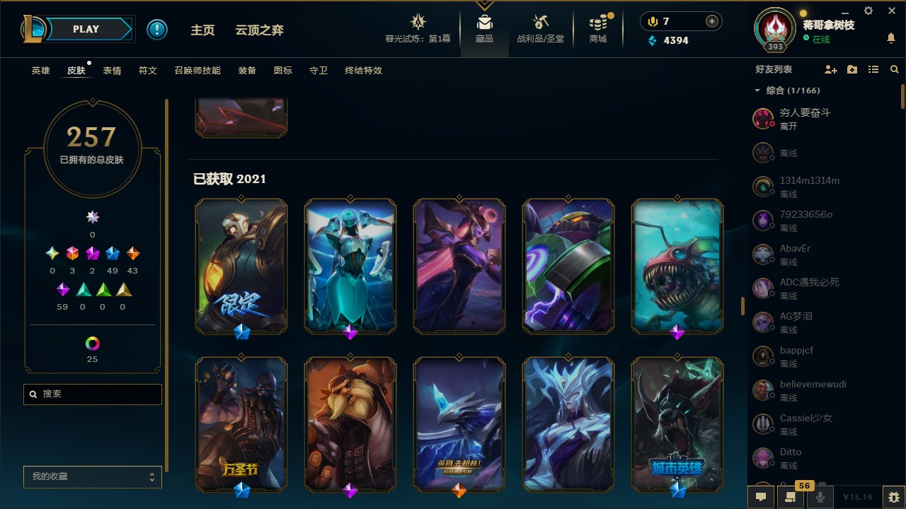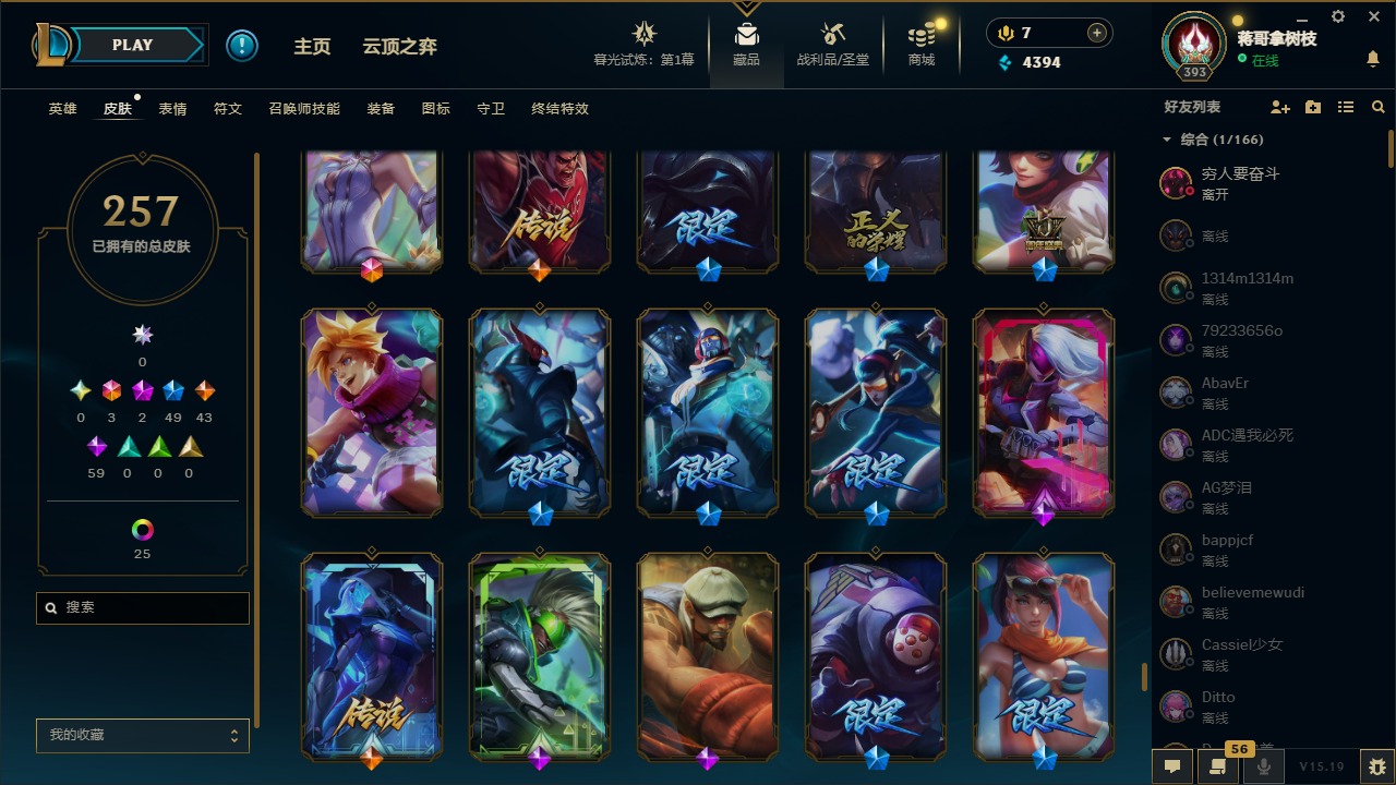 [12173308]3终极 2神话 49限定 43传说 59史诗 257皮肤 34炫彩 171英雄 可二次 可修改实名 优质装备:防爆天使 凯尔,暗影 沃里克,都铎王朝 图奇,冠军之隐 劫,永恒之森 乐芙兰,征服者 阿利斯塔,征服者 韦鲁斯,大元素使,灵魂守卫,武装战姬,2022 全球总决赛 阿兹尔,灰烬杀手 塞拉斯,冠军之箭 艾希 凯旋圣装,无畏骑士 瑟庄妮 赤子初心,净雪之月 莫甘娜 冬虹,魔女 阿卡丽 虚荣,青花瓷 艾瑞莉娅 月色,花仙子 拉克丝 纹白 情人节限定:穿心之剑 菲奥娜,甜心宝贝 安妮,幽梦玫瑰 球女 赛季限定皮:胜利凤凰 艾尼维亚,胜利女神 娑娜,胜利巨口 克格莫,胜利之王 泰达米尔,胜利之剑 剑魔,胜利枪神 卢锡安,胜利机器人 布里茨 冠军限定系列:S13 T1 李青,S1FNC 嘉文四世,S3 SKT T1 贾克斯,S3 SKT T1 李青,S5 SKT T1 瑞兹,S5 SKT T1 滑板鞋,S5 SKT T1 阿兹尔,S11 EDG 格雷福斯,S11 EDG 厄斐琉斯,S12 DRX 亚托克斯 冰雪节限定:冰雪风暴 希维尔,冬季仙境 卡尔玛,胡桃夹子 小丑,魄罗骑士 瑟庄妮,圣诞开心鬼 提莫,圣诞老人 德莱文,北极星圣贤 基兰,北极星猎人 斯维因,北极星守望者 佐伊 泳池派对:泳池派对 菲奥娜,泳池派对 李青 万圣节限定:海贼 瑞兹,灵魂收割者 索拉卡,魅惑女巫 波比,死亡誓约 劫,死亡誓约 卡特琳娜,小恶魔 菲兹 周年:4周年 锐雯,5周年 阿狸,6周年 伊泽瑞尔,7周年 艾瑞莉娅,7周年 泰隆,10周年 安妮