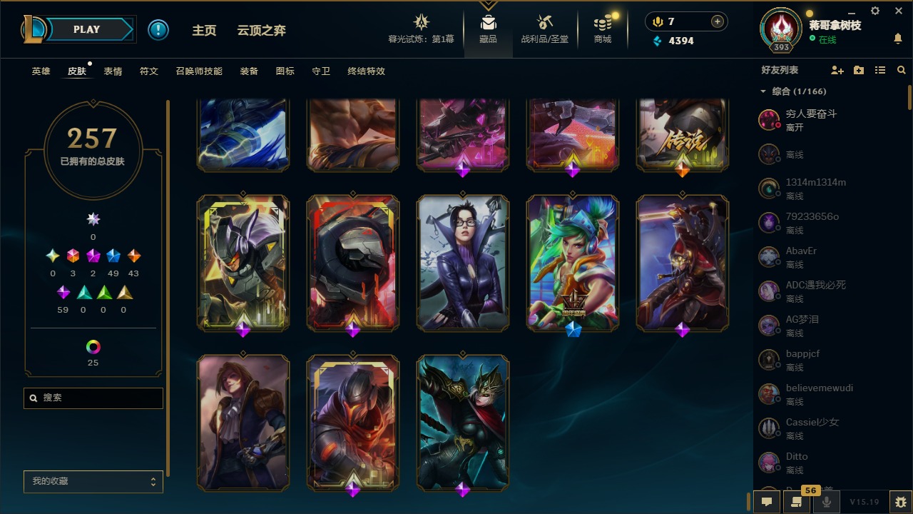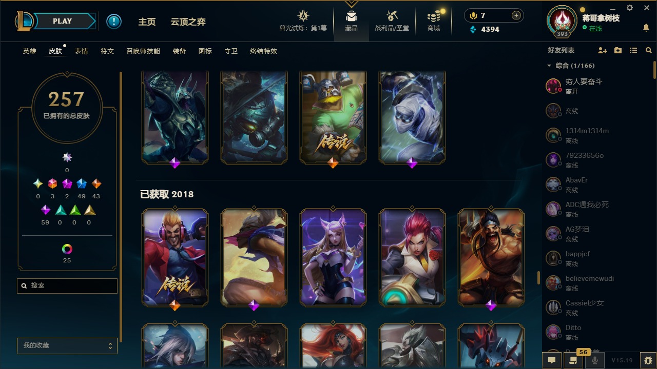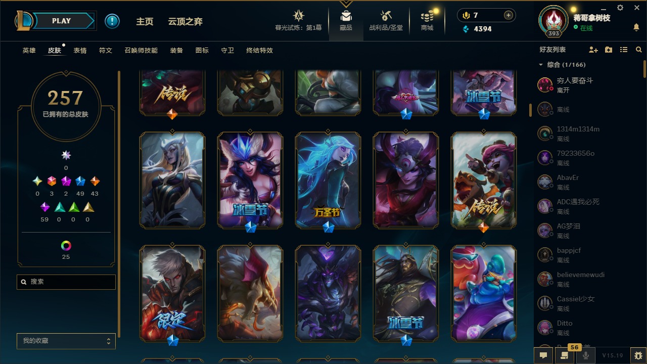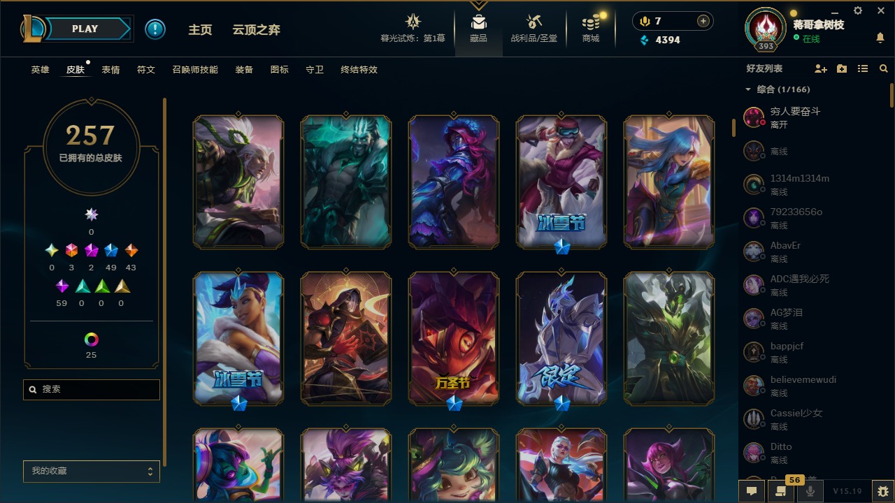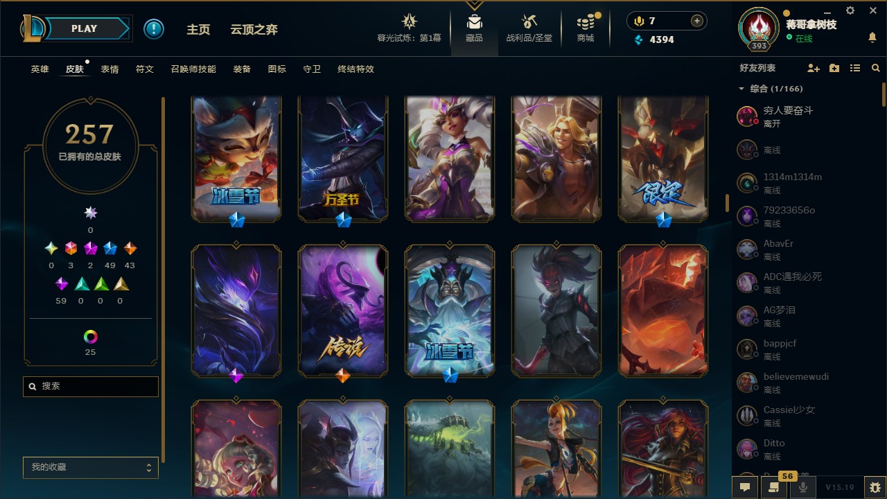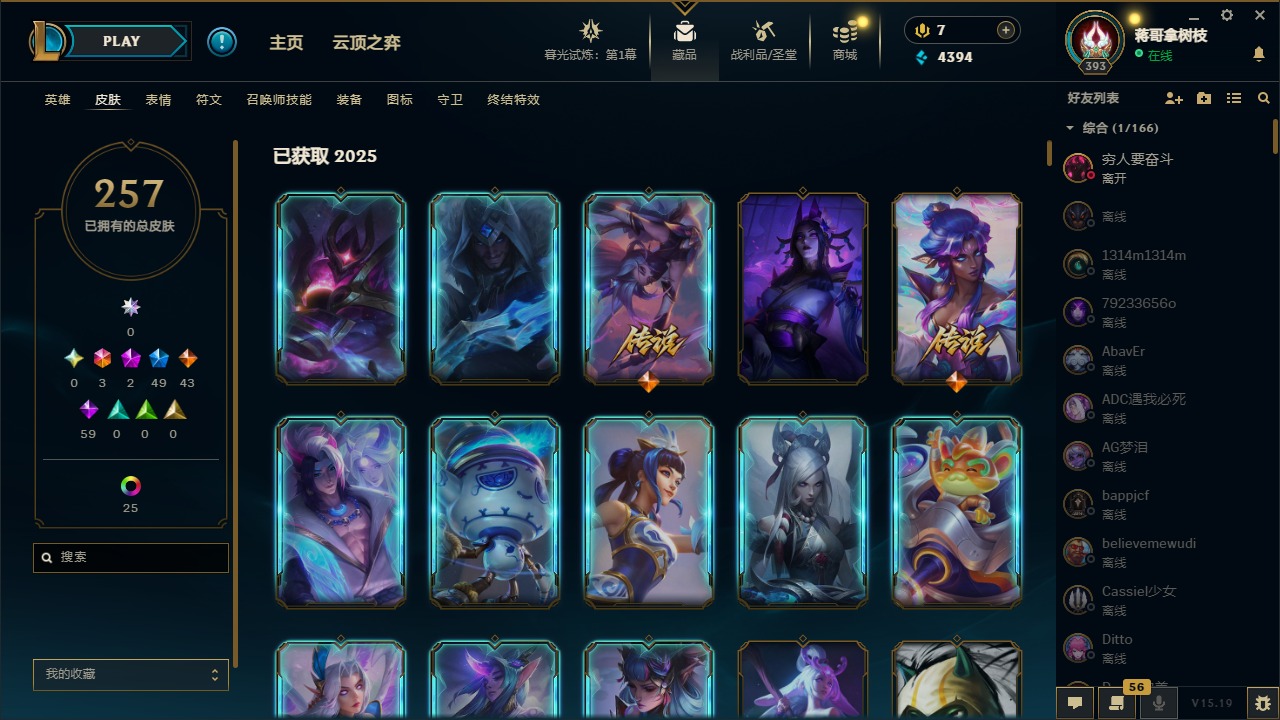 [12173308]3终极 2神话 49限定 43传说 59史诗 257皮肤 34炫彩 171英雄 可二次 可修改实名 优质装备:防爆天使 凯尔,暗影 沃里克,都铎王朝 图奇,冠军之隐 劫,永恒之森 乐芙兰,征服者 阿利斯塔,征服者 韦鲁斯,大元素使,灵魂守卫,武装战姬,2022 全球总决赛 阿兹尔,灰烬杀手 塞拉斯,冠军之箭 艾希 凯旋圣装,无畏骑士 瑟庄妮 赤子初心,净雪之月 莫甘娜 冬虹,魔女 阿卡丽 虚荣,青花瓷 艾瑞莉娅 月色,花仙子 拉克丝 纹白 情人节限定:穿心之剑 菲奥娜,甜心宝贝 安妮,幽梦玫瑰 球女 赛季限定皮:胜利凤凰 艾尼维亚,胜利女神 娑娜,胜利巨口 克格莫,胜利之王 泰达米尔,胜利之剑 剑魔,胜利枪神 卢锡安,胜利机器人 布里茨 冠军限定系列:S13 T1 李青,S1FNC 嘉文四世,S3 SKT T1 贾克斯,S3 SKT T1 李青,S5 SKT T1 瑞兹,S5 SKT T1 滑板鞋,S5 SKT T1 阿兹尔,S11 EDG 格雷福斯,S11 EDG 厄斐琉斯,S12 DRX 亚托克斯 冰雪节限定:冰雪风暴 希维尔,冬季仙境 卡尔玛,胡桃夹子 小丑,魄罗骑士 瑟庄妮,圣诞开心鬼 提莫,圣诞老人 德莱文,北极星圣贤 基兰,北极星猎人 斯维因,北极星守望者 佐伊 泳池派对:泳池派对 菲奥娜,泳池派对 李青 万圣节限定:海贼 瑞兹,灵魂收割者 索拉卡,魅惑女巫 波比,死亡誓约 劫,死亡誓约 卡特琳娜,小恶魔 菲兹 周年:4周年 锐雯,5周年 阿狸,6周年 伊泽瑞尔,7周年 艾瑞莉娅,7周年 泰隆,10周年 安妮