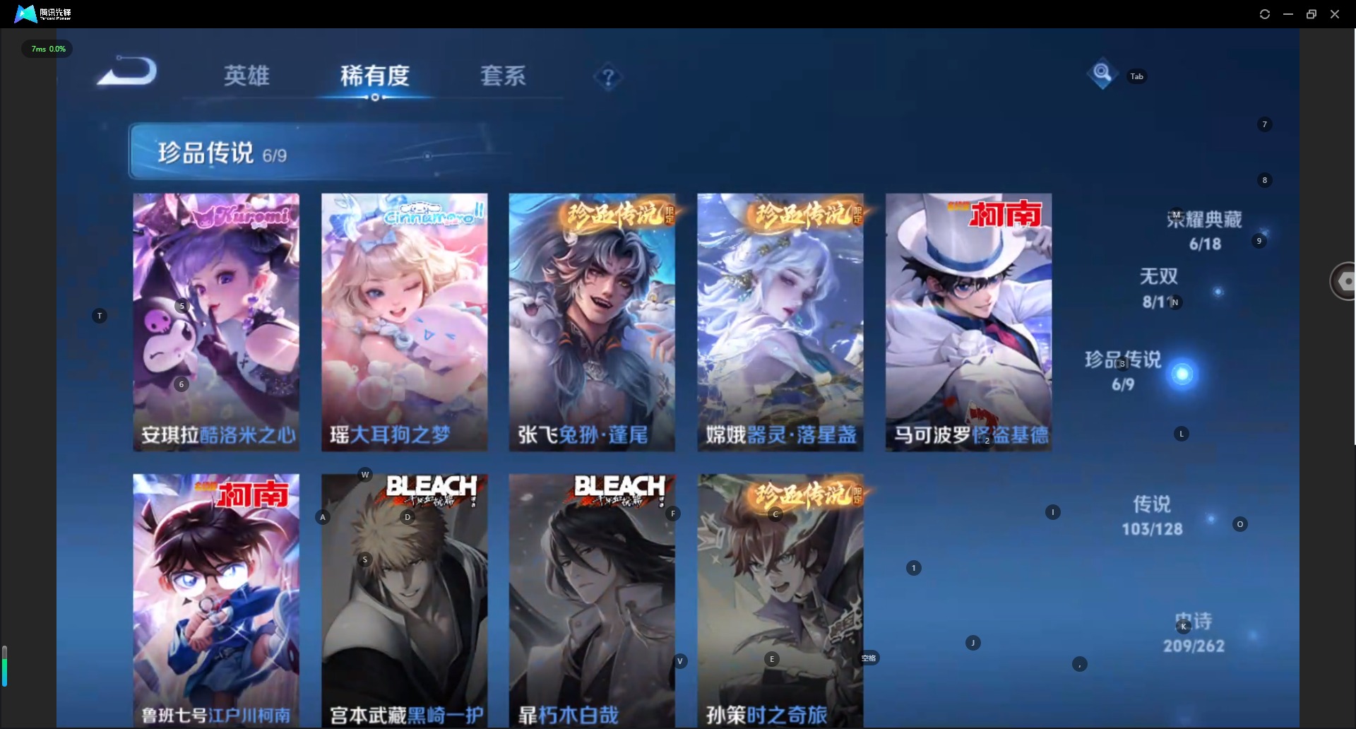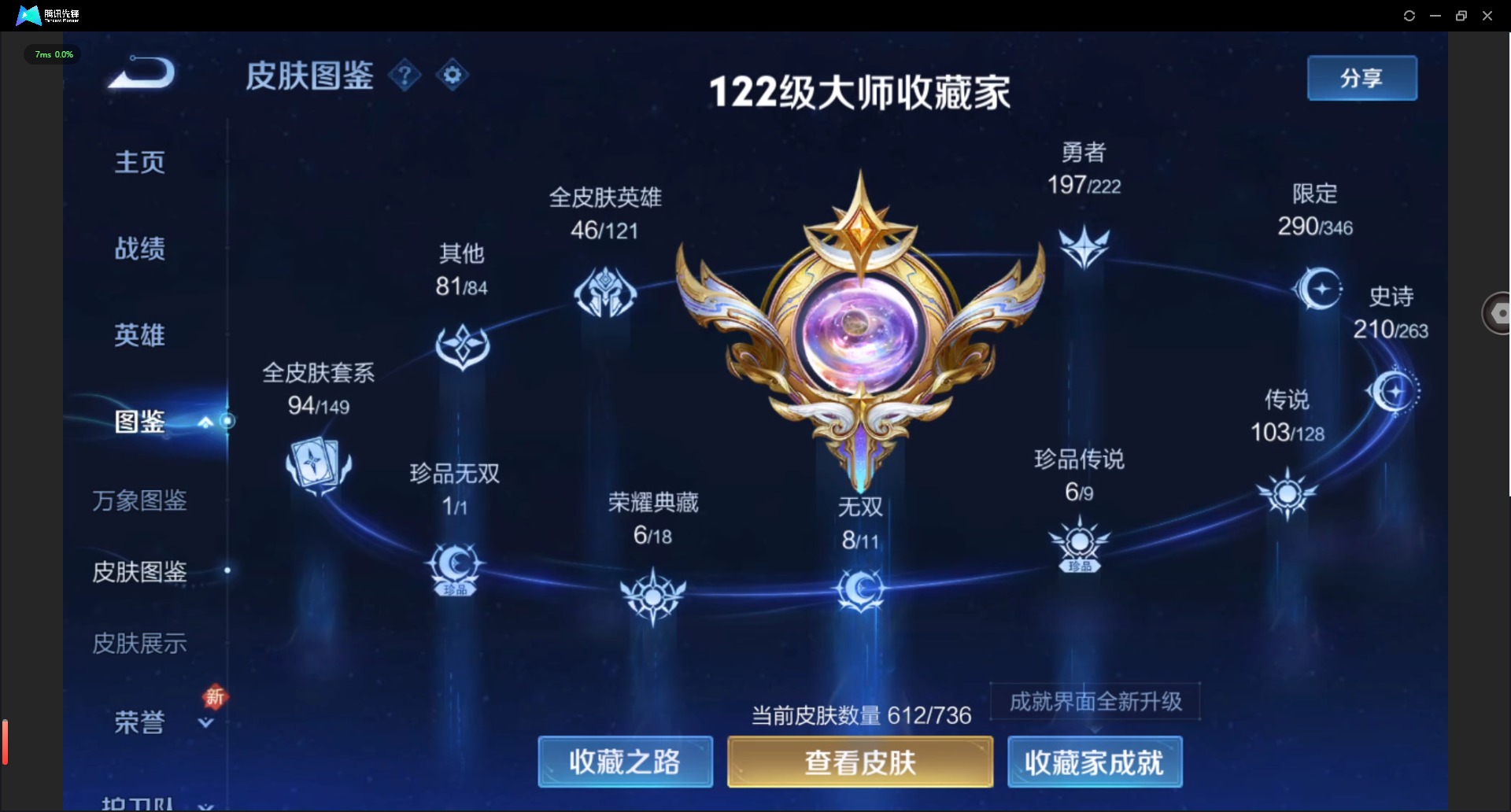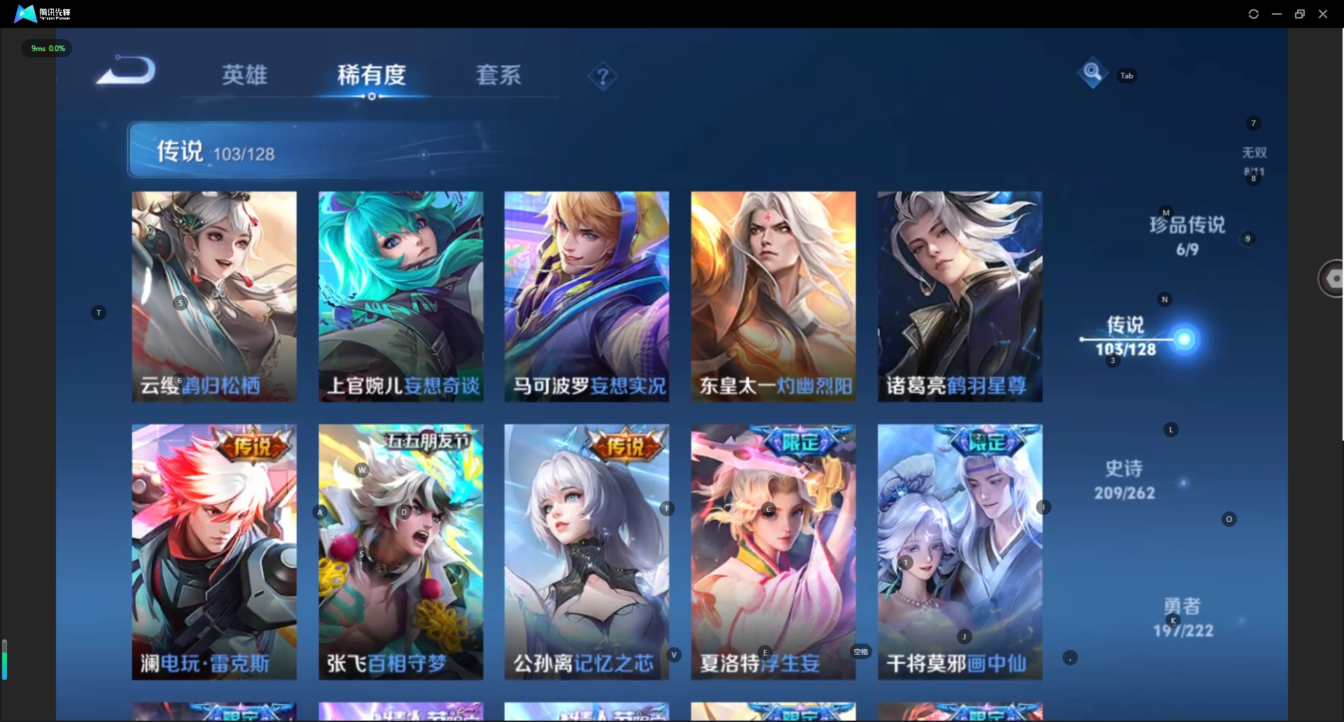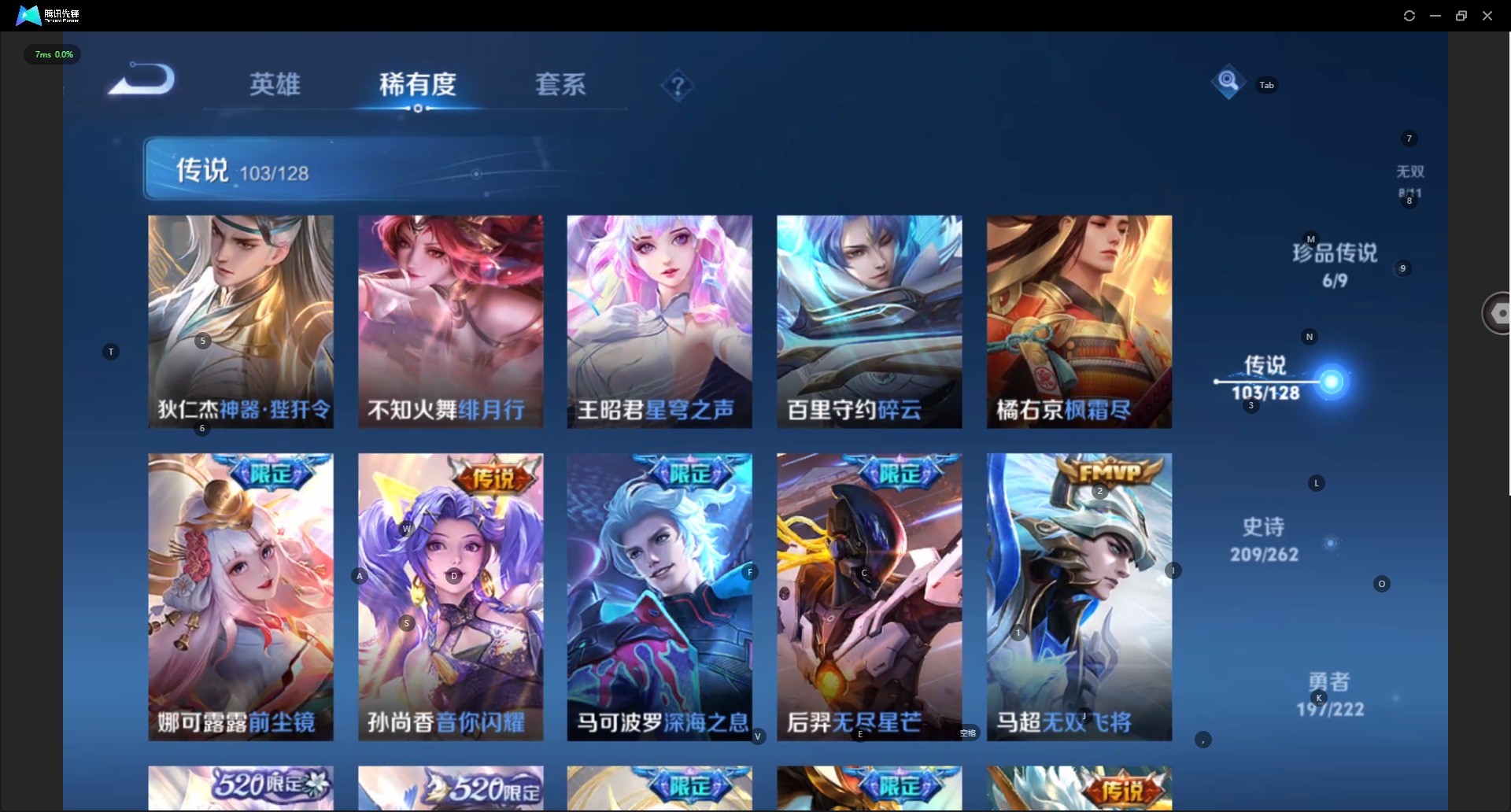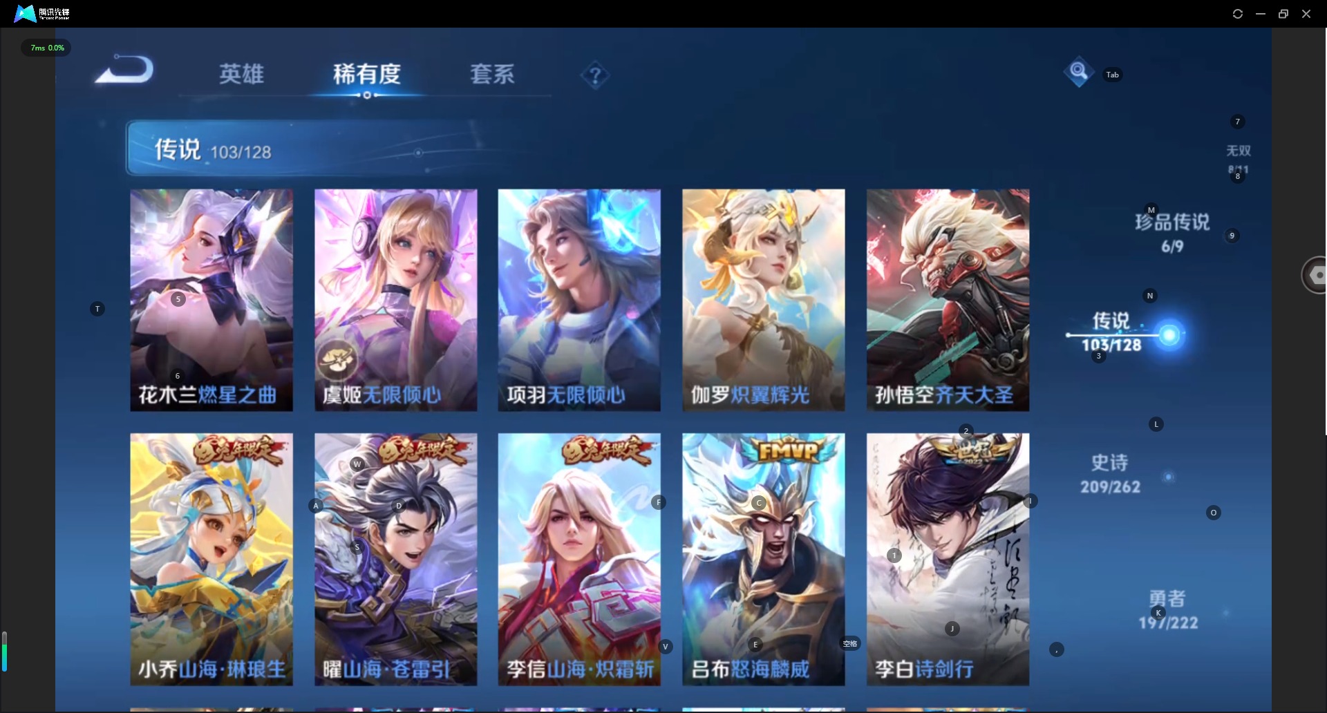 - [11883803]V7 1典藏 1珍品传说 11传说 124英雄 198皮肤 可修改实名 优质装备:神鉴启示录,器灵·落星盏,黄金狮子座,超时空战士-狄仁杰,浮生妄,百相守梦(张飞),霜月吟 珍宝阁皮:妄想食味 限定皮:愿照·岁时盈(虞姬年限),愿照·山河定(司空震年限),愿照·千秋盛(女娲年限),映山客,鸣野蒿,太华(伽罗年限),李小龙,寅虎·心曲(虎婆),神器·万象笔,山海·玄木吟(马可年限) 史诗皮:器灵·浮梦炉,化蝶舞,星界战将,龙之律动,石田雨龙,茶境仙,破空之剑,蒙犽顽岩魄,海诺心动手记,夜落电台,乘龙·聚宝船(安琪拉年限),百相守梦-黄忠,织梦人,遇见神鹿,特工魅影,真我赫兹(百里守约),闲日渔趣,蒙恬荣光圣徽,冰冠公主,偶像歌手,白蛇,电玩·兔顽号,电玩·爆裂旋风,银翎春语,龙骑士(小龙虾),末日机甲-吕布,猫狗日记-孙策,猫狗日记-大乔,乱世虎臣,摇滚巨星,水果甜心,时之奇旅-安琪拉,德古拉伯爵,幽灵船长,鬼剑武藏,心灵战警,乐园奇幻夜,舞动绿茵,乘风破浪,逐浪之夏,金属风暴,鹰眼统帅,魅力维加斯,滕王阁序,千筹问战