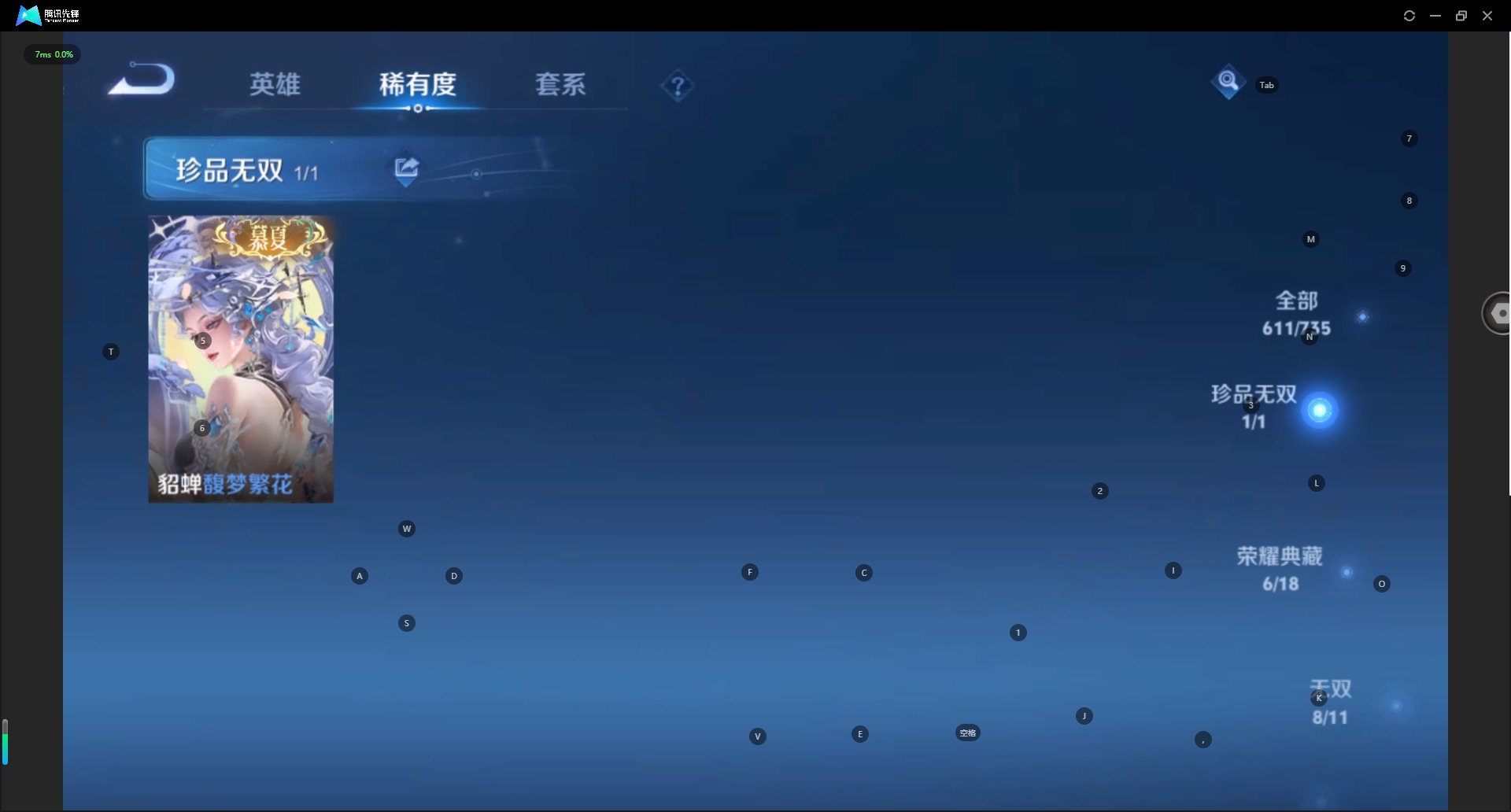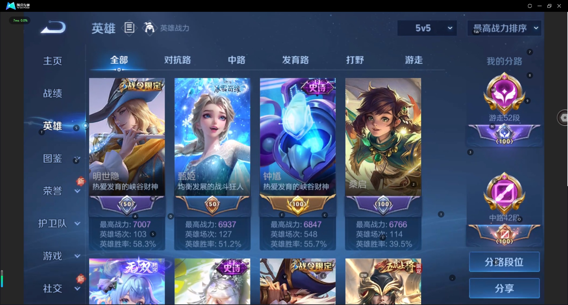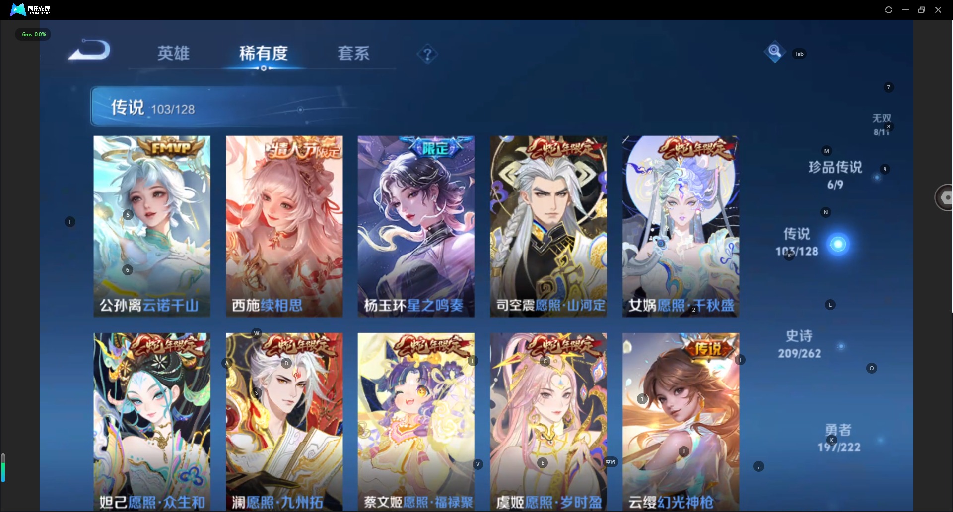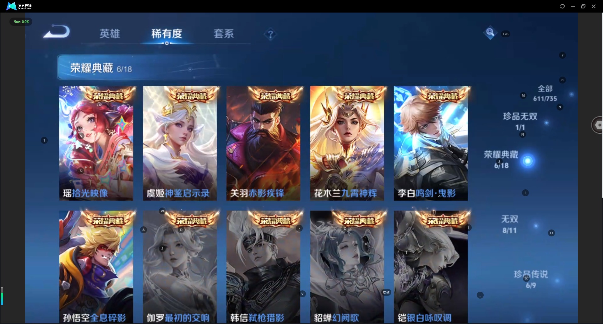 - [11883803]V7 1典藏 1珍品传说 11传说 124英雄 198皮肤 可修改实名 优质装备:神鉴启示录,器灵·落星盏,黄金狮子座,超时空战士-狄仁杰,浮生妄,百相守梦(张飞),霜月吟 珍宝阁皮:妄想食味 限定皮:愿照·岁时盈(虞姬年限),愿照·山河定(司空震年限),愿照·千秋盛(女娲年限),映山客,鸣野蒿,太华(伽罗年限),李小龙,寅虎·心曲(虎婆),神器·万象笔,山海·玄木吟(马可年限) 史诗皮:器灵·浮梦炉,化蝶舞,星界战将,龙之律动,石田雨龙,茶境仙,破空之剑,蒙犽顽岩魄,海诺心动手记,夜落电台,乘龙·聚宝船(安琪拉年限),百相守梦-黄忠,织梦人,遇见神鹿,特工魅影,真我赫兹(百里守约),闲日渔趣,蒙恬荣光圣徽,冰冠公主,偶像歌手,白蛇,电玩·兔顽号,电玩·爆裂旋风,银翎春语,龙骑士(小龙虾),末日机甲-吕布,猫狗日记-孙策,猫狗日记-大乔,乱世虎臣,摇滚巨星,水果甜心,时之奇旅-安琪拉,德古拉伯爵,幽灵船长,鬼剑武藏,心灵战警,乐园奇幻夜,舞动绿茵,乘风破浪,逐浪之夏,金属风暴,鹰眼统帅,魅力维加斯,滕王阁序,千筹问战