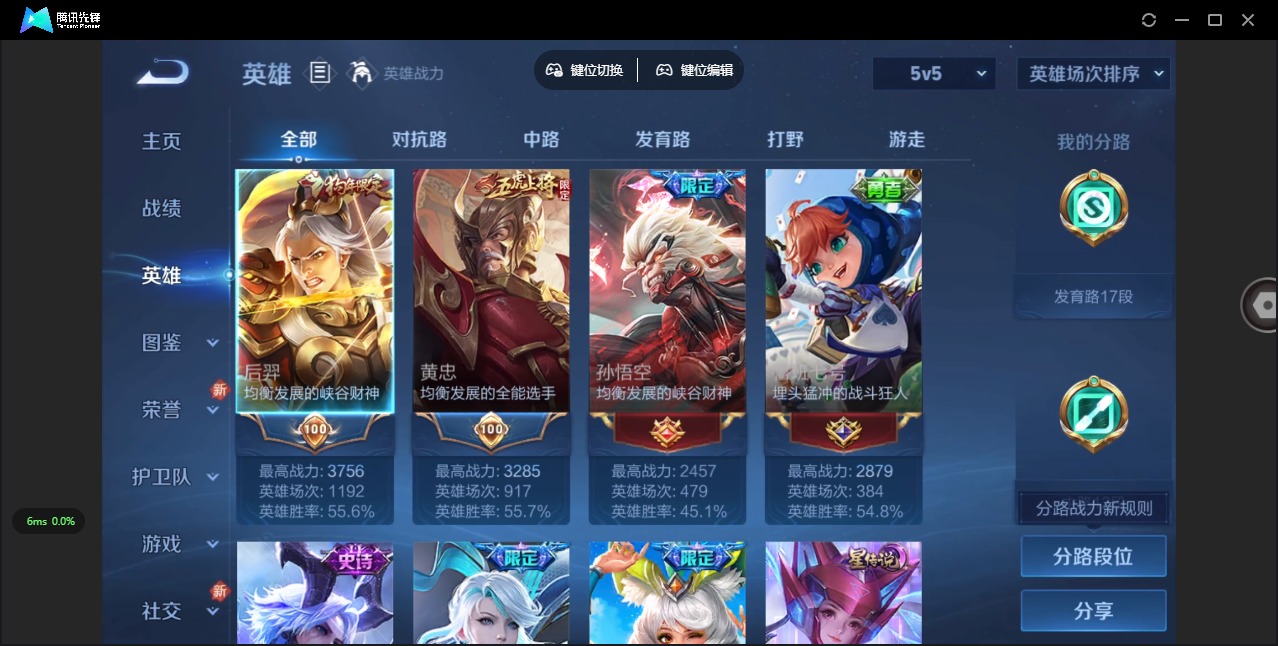 - [12032232]V6 5传说 122英雄 154皮肤 可修改实名 优质装备:黄金白羊座,久胜战神 传说皮:幻光神枪 珍宝阁皮:胡桃夹子 限定皮:愿照·九州拓(澜年限),鸣野蒿,傲雪梅枪,山海·玄木吟(马可年限) 史诗皮:鸭鸭历险记-刘禅,化蝶舞,星界战将,龙之律动,石田雨龙,茶境仙,破空之剑,战舞者,紫霞仙子,电玩小子(小书包),特工魅影,江河有灵,高渐离燃音魔法,龙骑士(小龙虾),晚萤,末日机甲-吕布,猫狗日记-孙策,猫狗日记-大乔,时之恋人-孙尚香,乱世虎臣,节奏热浪,女仆咖啡,摇滚巨星,水果甜心,绅士熊喵,功夫厨神,暗隐猎兽者,幽灵船长,鬼剑武藏,心灵战警,乐园奇幻夜,乘风破浪,曙光守护者,金属风暴,圣诞狂欢,鹰眼统帅,魅力维加斯,未来纪元-赵云