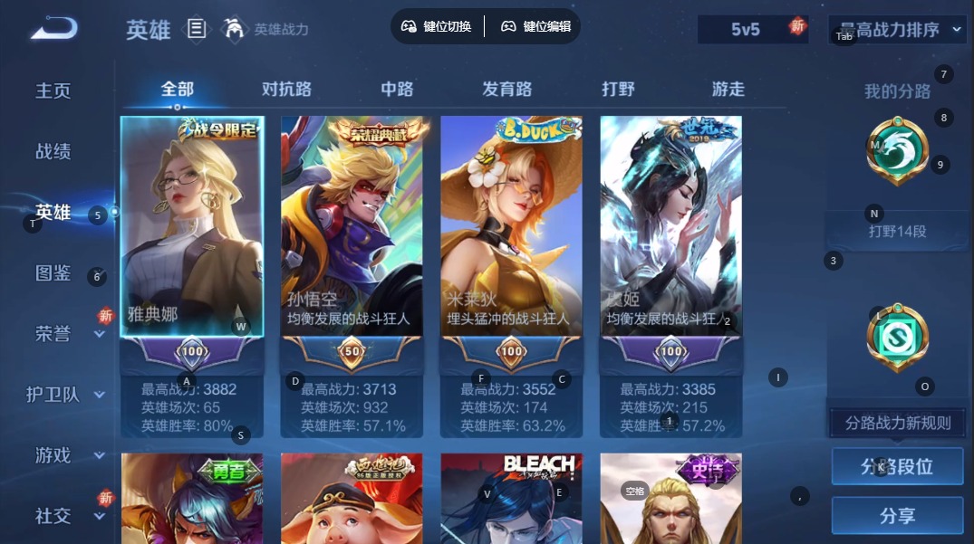 - [11496853]铠典藏,澜蛇年限,久胜,小将军,仲夏夜,马可年限,-可二次-123英雄-242皮肤-1典藏-21传说-69史诗 炽阳神光-镜 山海·苍雷引-曜 山海·炽霜斩-李信 无尽星芒-后羿 山海·玄木吟-马可波罗 岱宗-典韦 冰冠公主-雅典娜 百相守梦-刘备